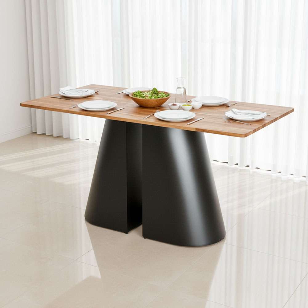 Bàn ăn chữ nhật 140x80cm gỗ tràm chân sắt BA68293