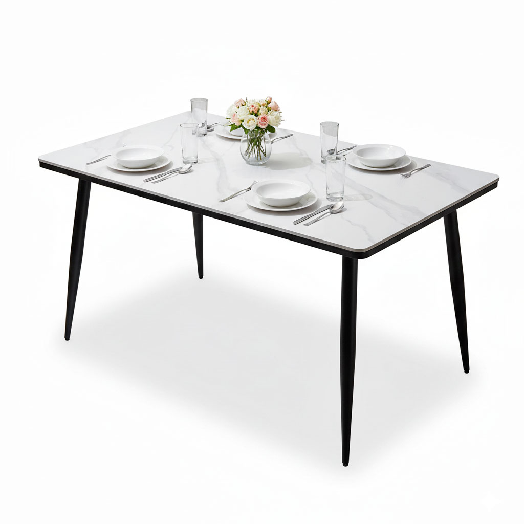 Bàn ăn Doris 140x80cm mặt ceramic chân sắt côn BA68056