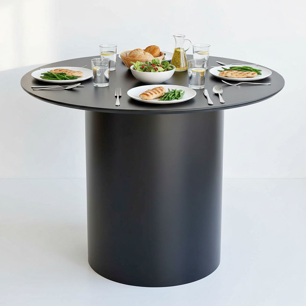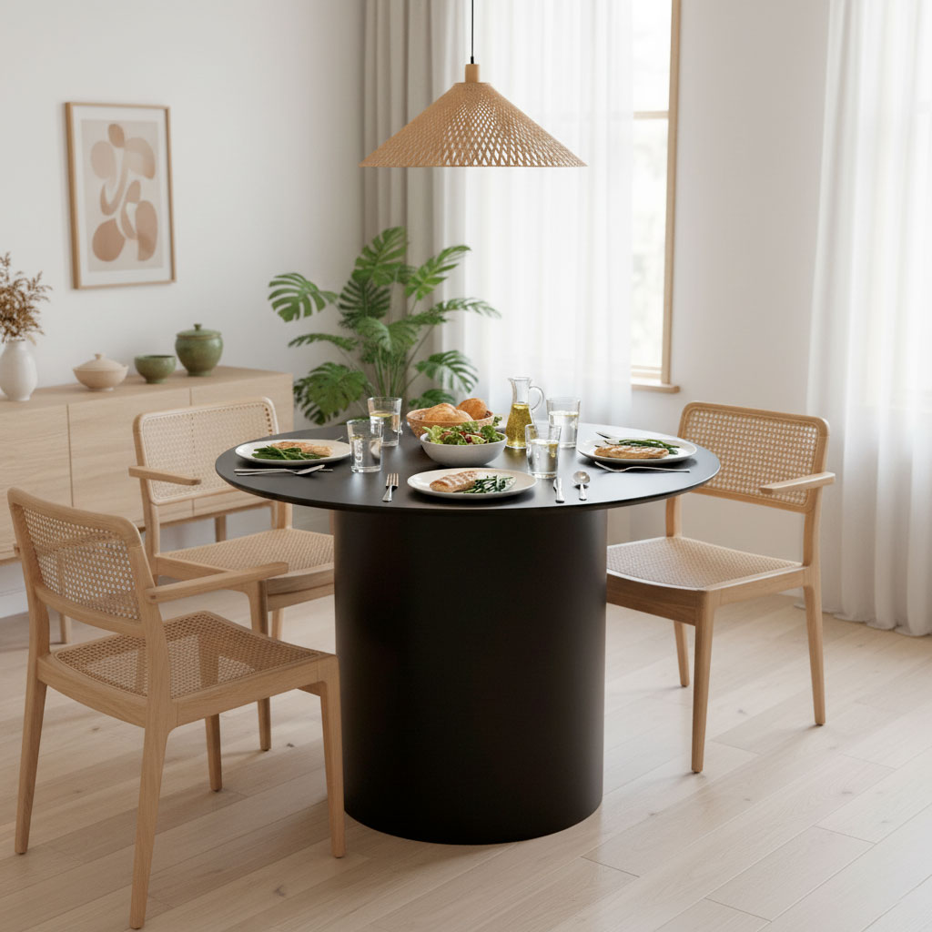Bàn ăn tròn 100cm gỗ cao su sơn màu đen BA68180
