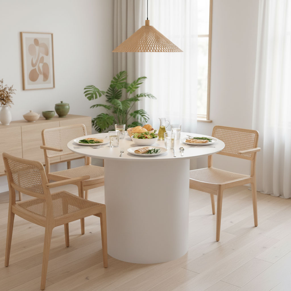 Bàn tròn 1m gỗ cao su BA68180 có thiết kế vô cùng độc đáo và đẹp mắt với điểm nhấn là chân trụ tròn được làm bằng gỗ cao su. Mặt bàn sử dụng gỗ cao su tiêu chuẩn AA dày 17mm được xử lý và sơn PU chống thấm nước và cong vênh, mặt gỗ sơn PU 5 màu sắc khác nhau giúp bạn có thể lựa chọn sản phẩm phù hợp với không gian của mình.