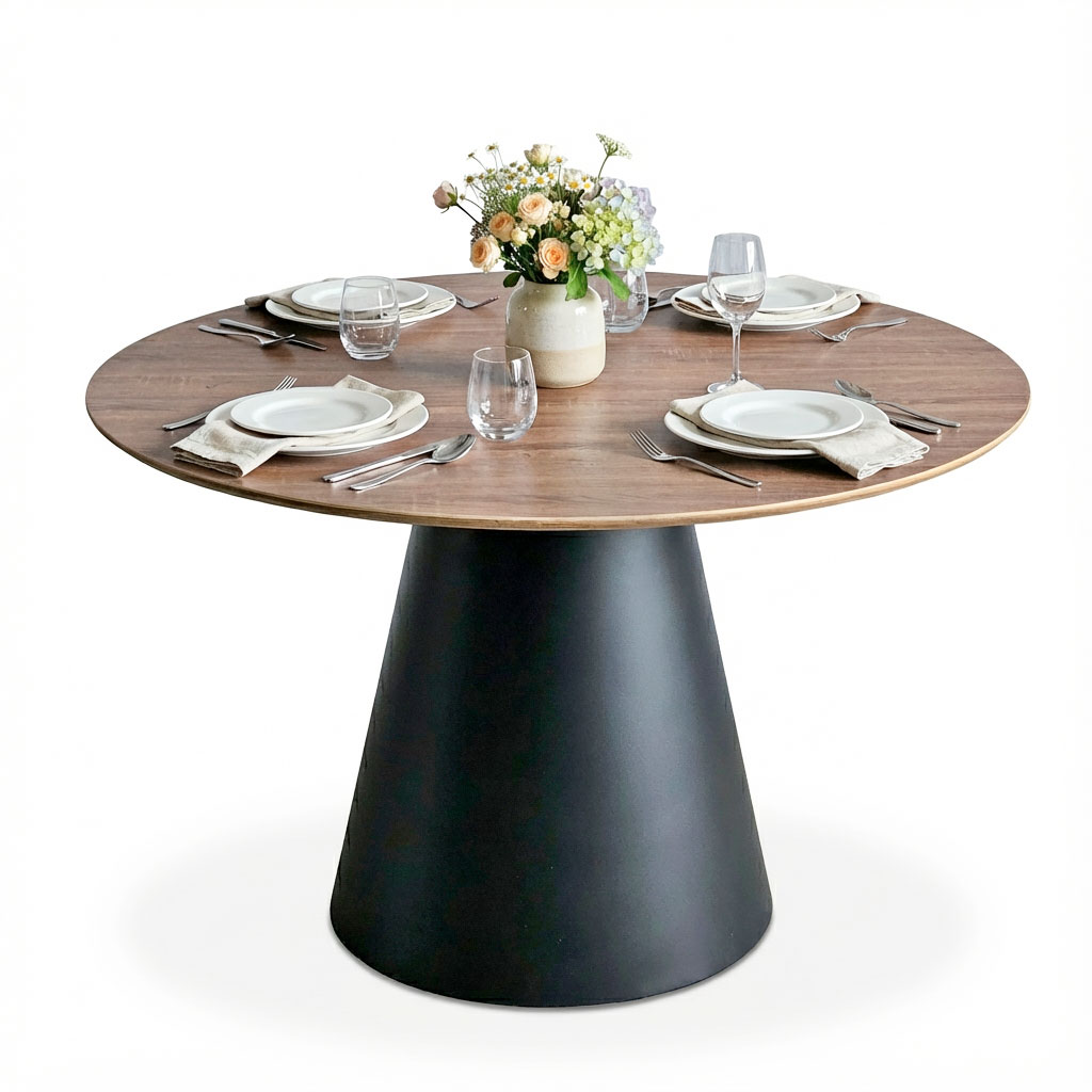 Bàn ăn tròn 120x120cm gỗ plywood chân sắt BA68297