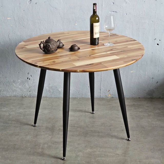 Bàn ăn tròn đk 100cm gỗ tràm chân sắt CONE BA68209