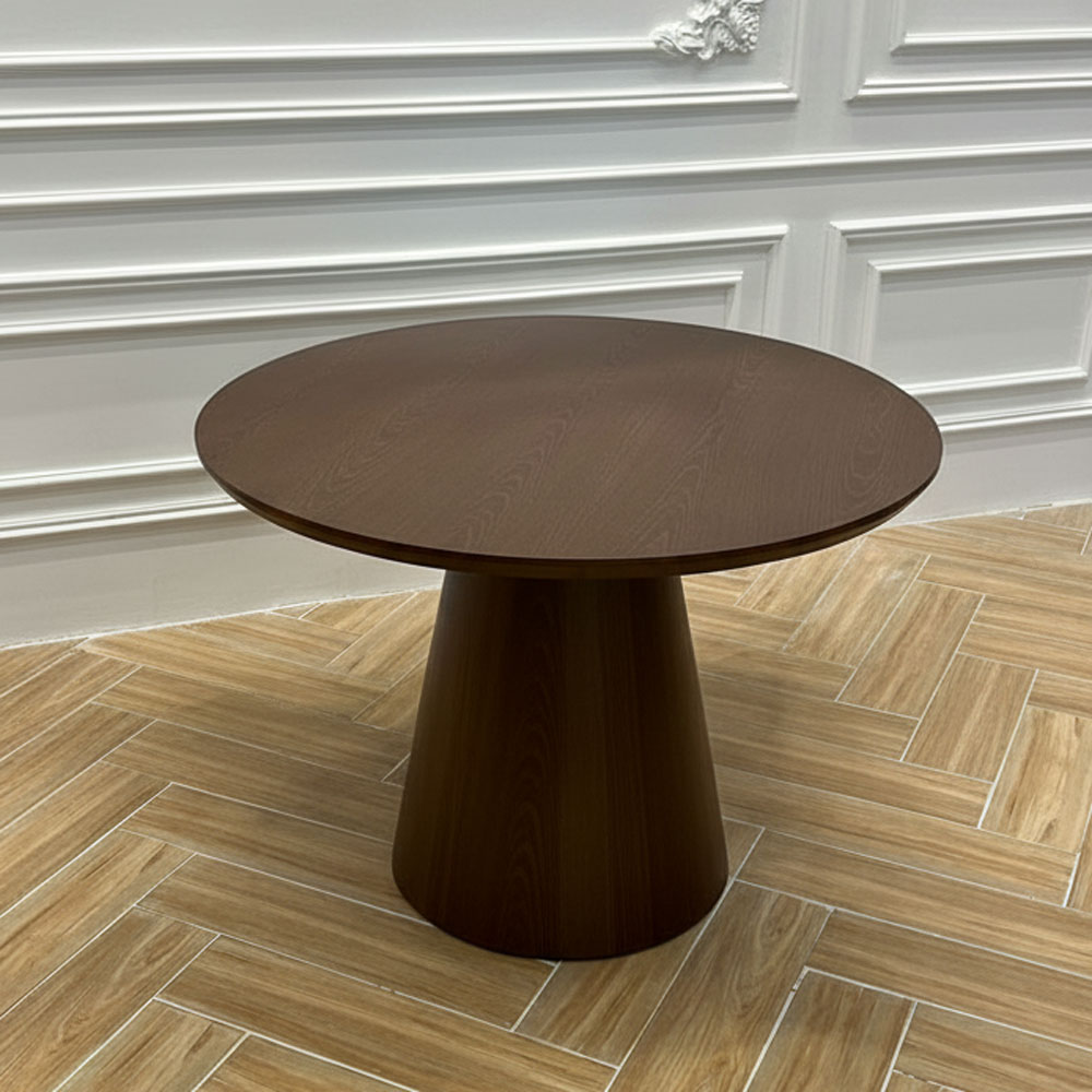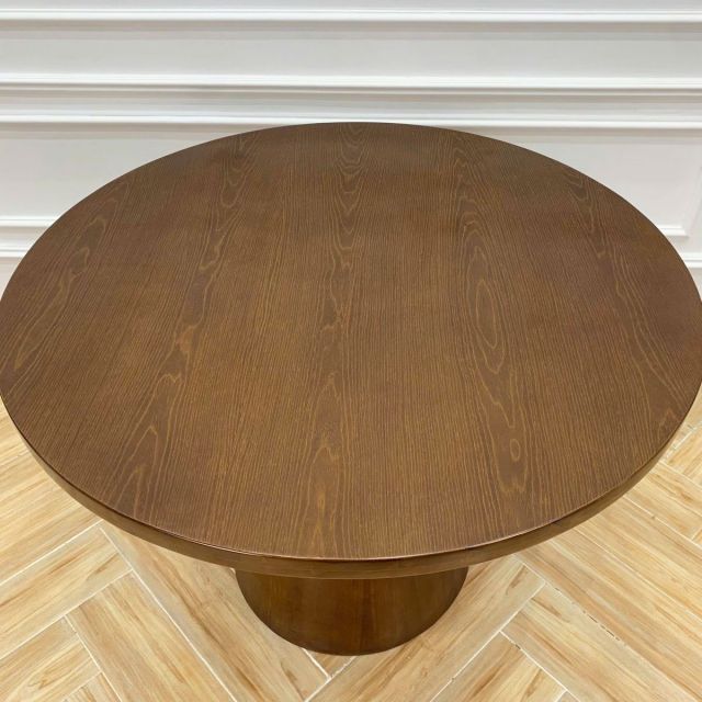 Bàn ăn tròn đường kính 1m gỗ cao su chân hình nón BA68273 được thiết kế tinh tế, làm từ gỗ cao su ghép cạnh giả dày, được phủ thêm lớp veneer sồi, sơn một lớp PU chống thấm màu nâu gỗ óc chó. Mặt bàn tròn mang lại cảm giác ấm cúng, giúp các thành viên dễ dàng trò chuyện trong mỗi bữa ăn. Chân bàn hình nón tạo nét cổ điển lại phù hợp với nhiều không gian nội thất hiện đại. Với màu gỗ nâu tự nhiên cùng lớp sơn phủ mịn màng, bàn ăn này không chỉ bền đẹp theo thời gian mà còn tôn lên vẻ ấm áp và đẳng cấp cho không gian phòng ăn của bạn.