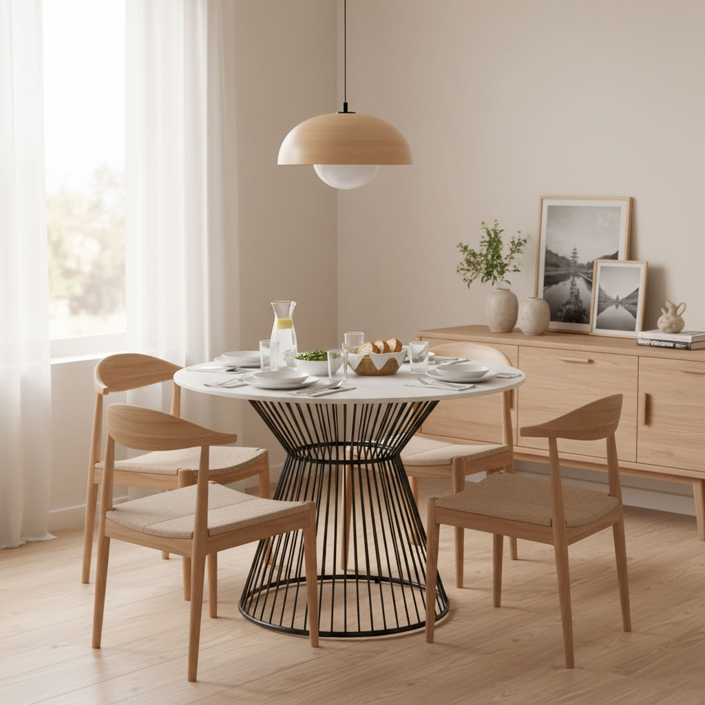 Bàn ăn tròn mặt đá BA68181 thuộc dòng sản phẩm bàn ăn cao cấp từ Nội Thất HomeOffice với điểm nhấn là chân sắt nghệ thuật kiểu được thiết kế mới lạ, hút mắt người nhìn. Mặt bàn được làm từ mặt đá trắng cao cấp vừa có tính thẩm mỹ vừa chịu lực tốt, hạn chế tối đa vết trầy xước, các góc bàn được bo cạnh tròn mềm mại, an toàn cho người sử dụng. Bàn ăn BA68181 với kiểu dáng độc đáo nhưng không kém phần sang trọng chắc chắn sẽ là điểm nhấn cho phòng bếp nhà bạn.
