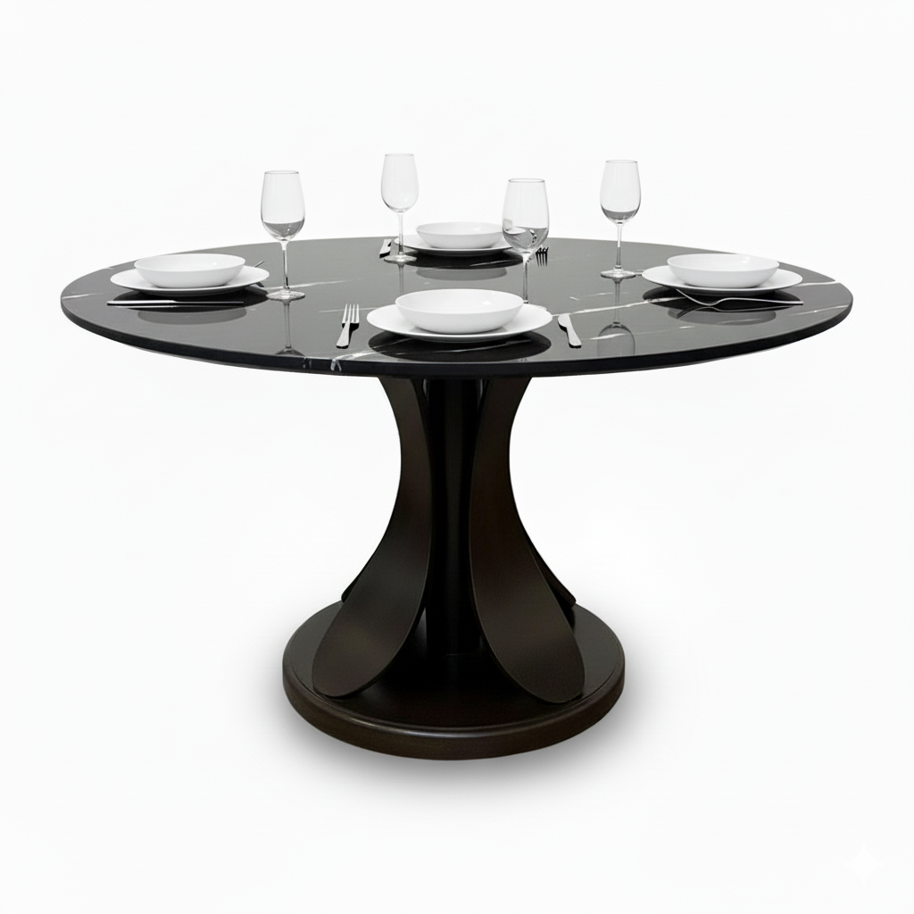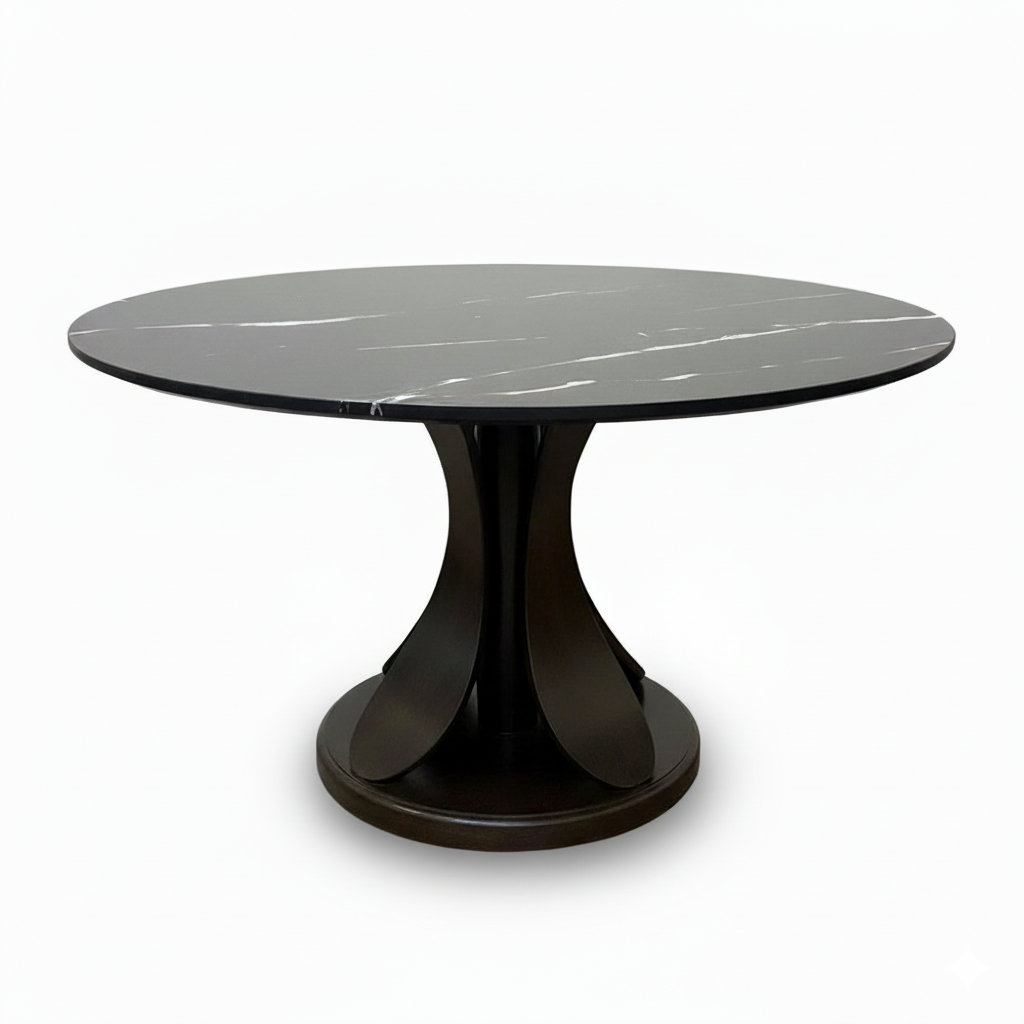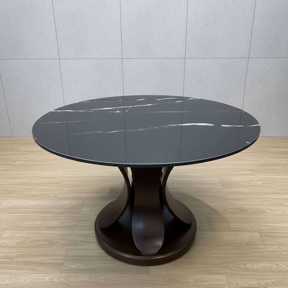 Bàn ăn tròn Lotus đk 1m2 mặt đá ceramic chân gỗ tần bì BA68276