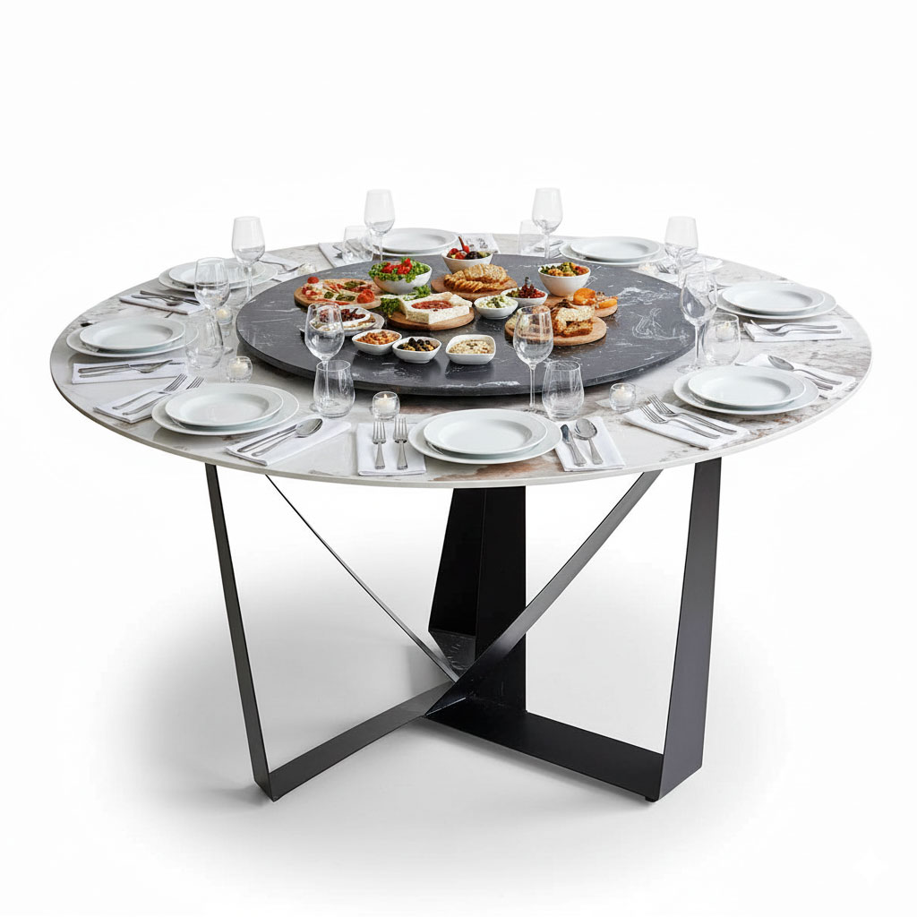 Bàn ăn xoay mặt đá trắng chân sắt sơn tĩnh điện