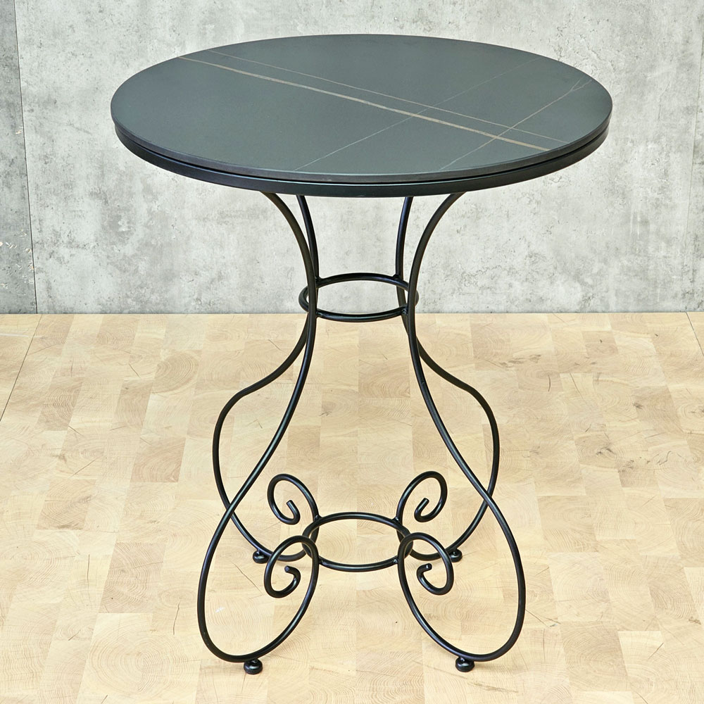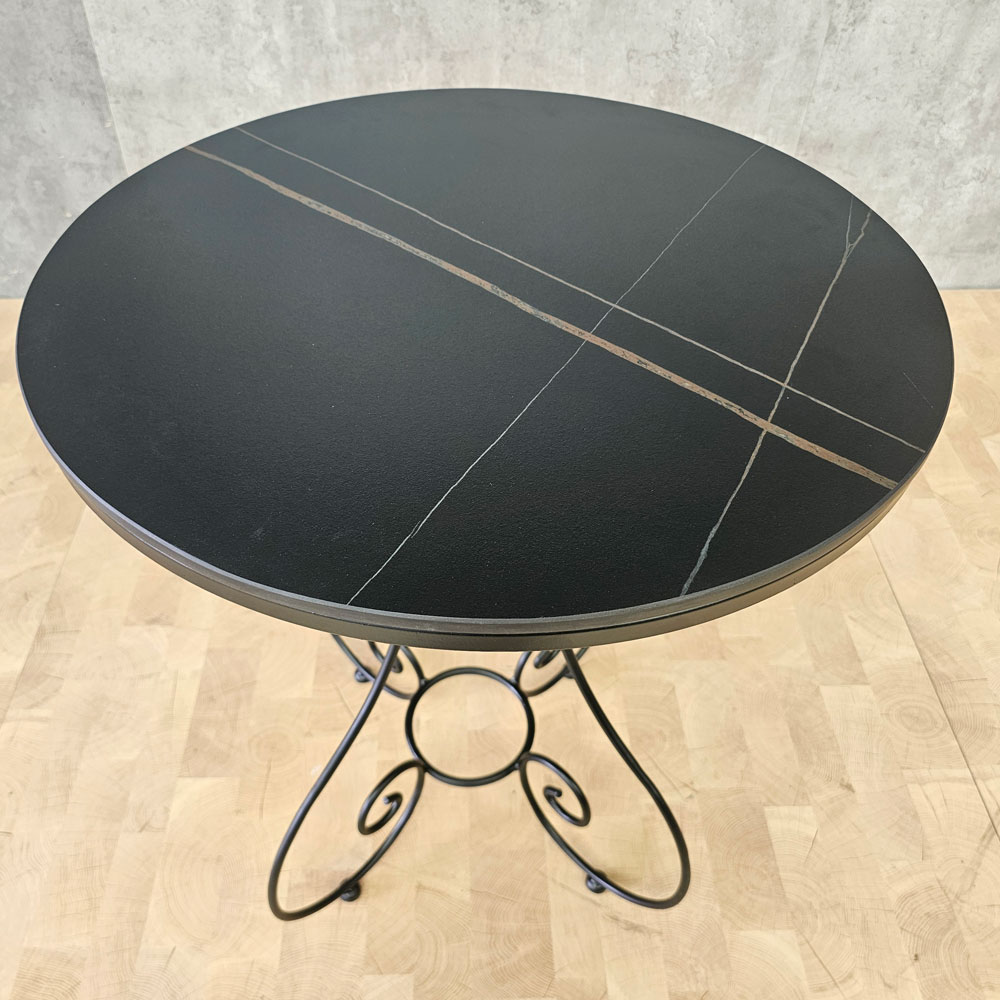Bàn cafe tròn 60cm mặt ceramic chân sắt hoa văn CFD68132
