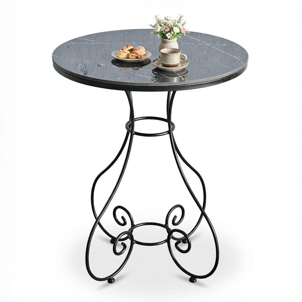 Bàn cafe tròn 60cm mặt ceramic chân sắt hoa văn CFD68132