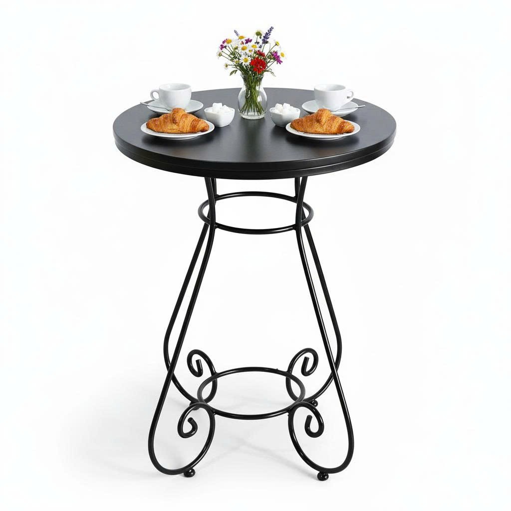 Bàn cafe tròn đen 60x60x75m gỗ cao su CFD68284