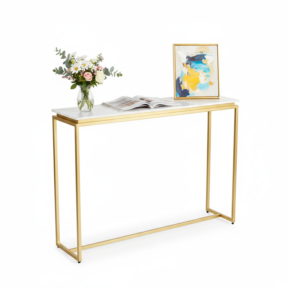 Bàn console ROVE mặt đá khung sắt CST044 sở hữu kiểu dáng tối giản, thiết kế tinh tế thường được sử dụng trong không gian phòng khách hay hành lang nhằm tạo điểm nhấn cho không gian thêm hoàn hảo. Khung sắt sơn nhiều màu đẹp mắt kết hợp với màu đá trắng hoặc đen, kích thước 120cm tiêu chuẩn phù hợp với nhiều không gian phòng khách hay sảnh dùng để trang trí.