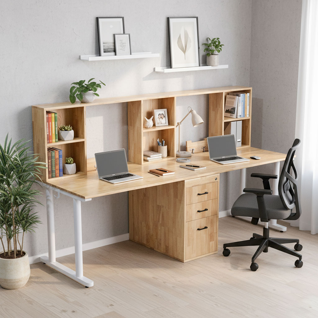 Bàn cụm 2 người có ngăn giấu tiền 240x80cm gỗ cao su HBTO049