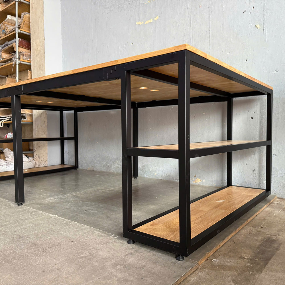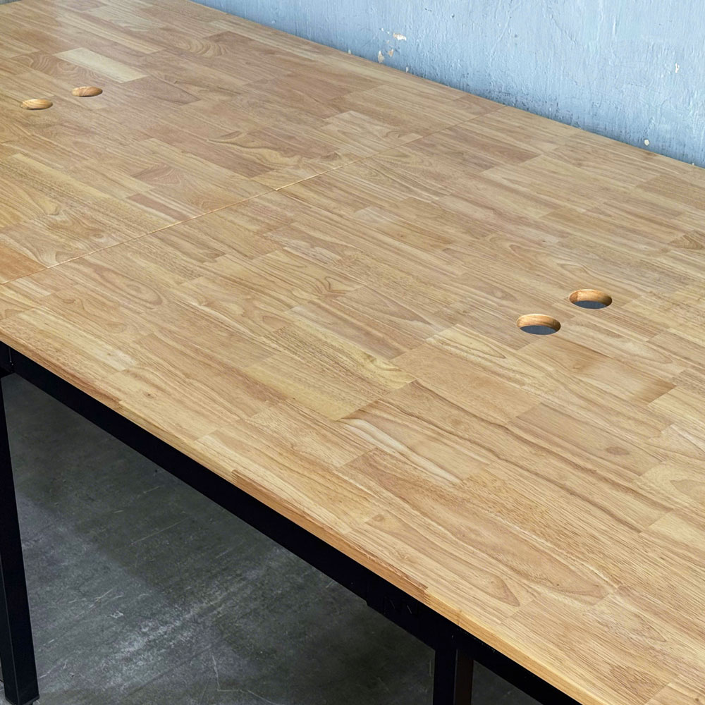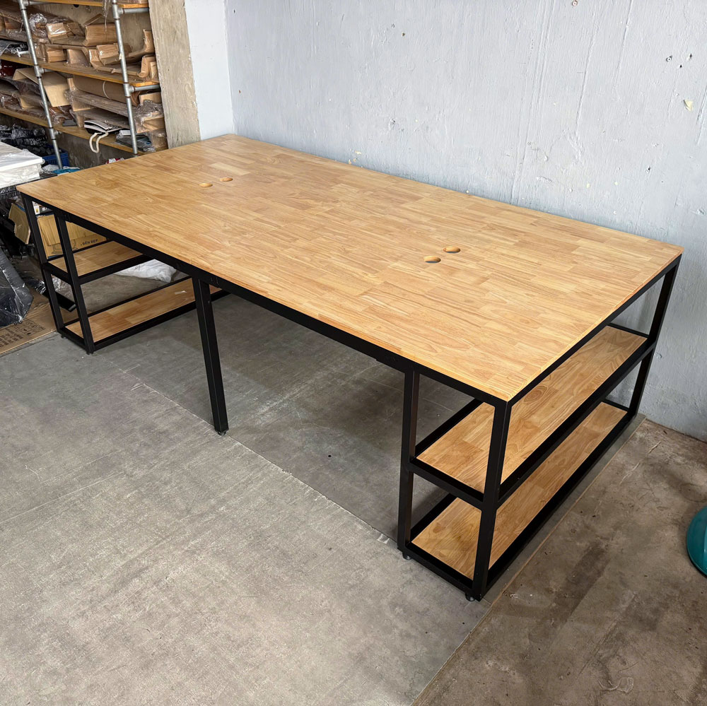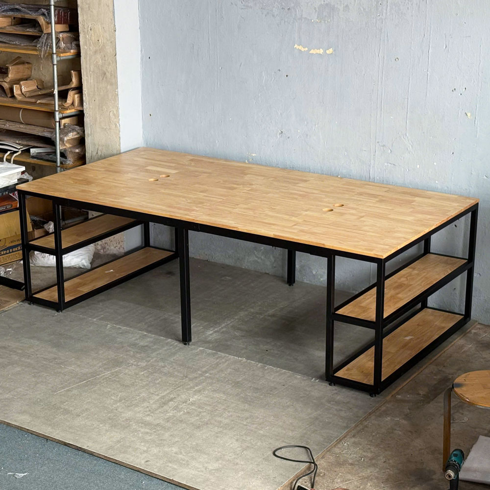 Bàn cụm 4 chỗ liền kệ 240x120cm gỗ cao su CBLV001