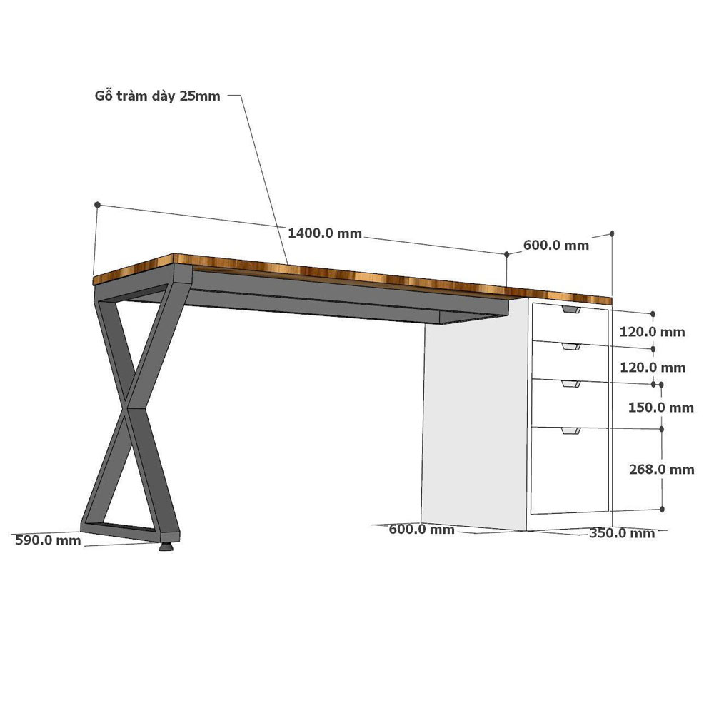 - Kích thước: 140x60x75cm ( Dài x Rộng x Cao )