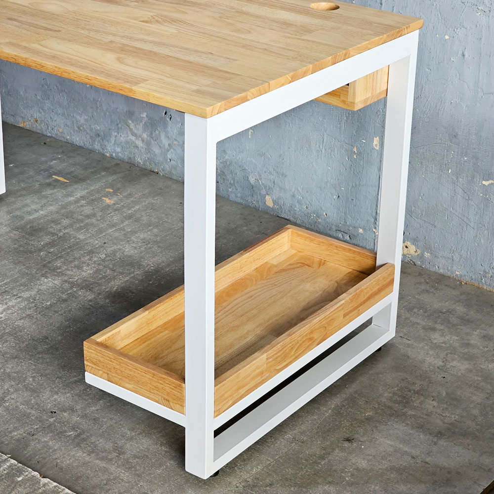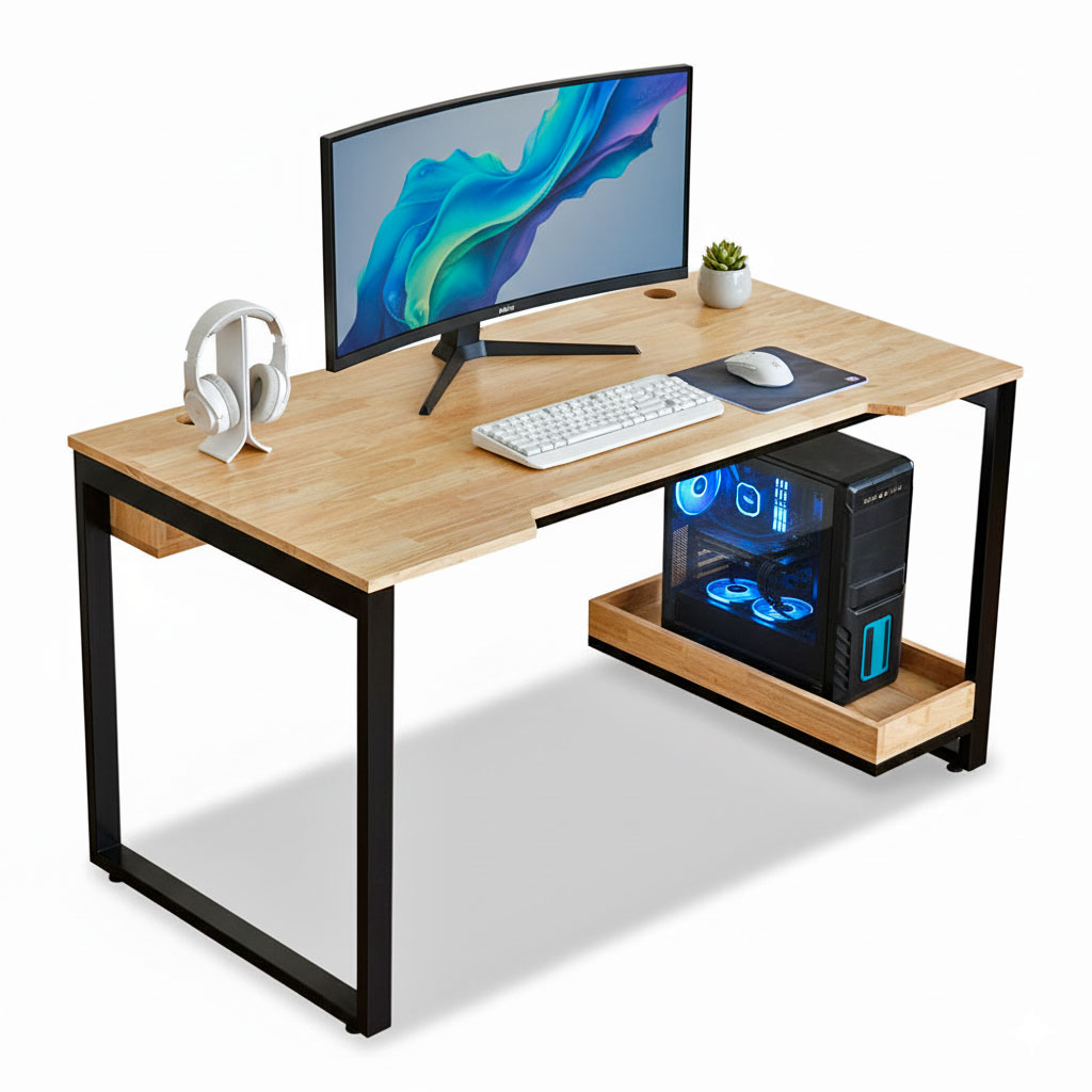 Mặt bàn gaming được làm bằng vật liệu chính được chúng tôi lựa chọn và sử dụng là gỗ cao su AA, loại dày 17mm, đã được xử lý qua xấy công nghệ giúp tăng khả năng chống thấm và chống cong vênh. Bề mặt gỗ đã được xử lý PU giúp tăng tính thẩm mỹ và chống thấm nước. Kết hợp với mặt gỗ bàn là hệ khung chân bàn sử dụng cơ cấu lắp ráp ngàm chắc chắn, bề mặt phủ lớp sơn tĩnh điện hạn chế tối đa ăn mòn hoá học, lớp sơn tĩnh điện nâng cao tuổi thọ sản phẩm. Mỗi sản phẩm được hoàn thiện cẩn thận, tỉ mỉ từ công đoạn thiết kế.
