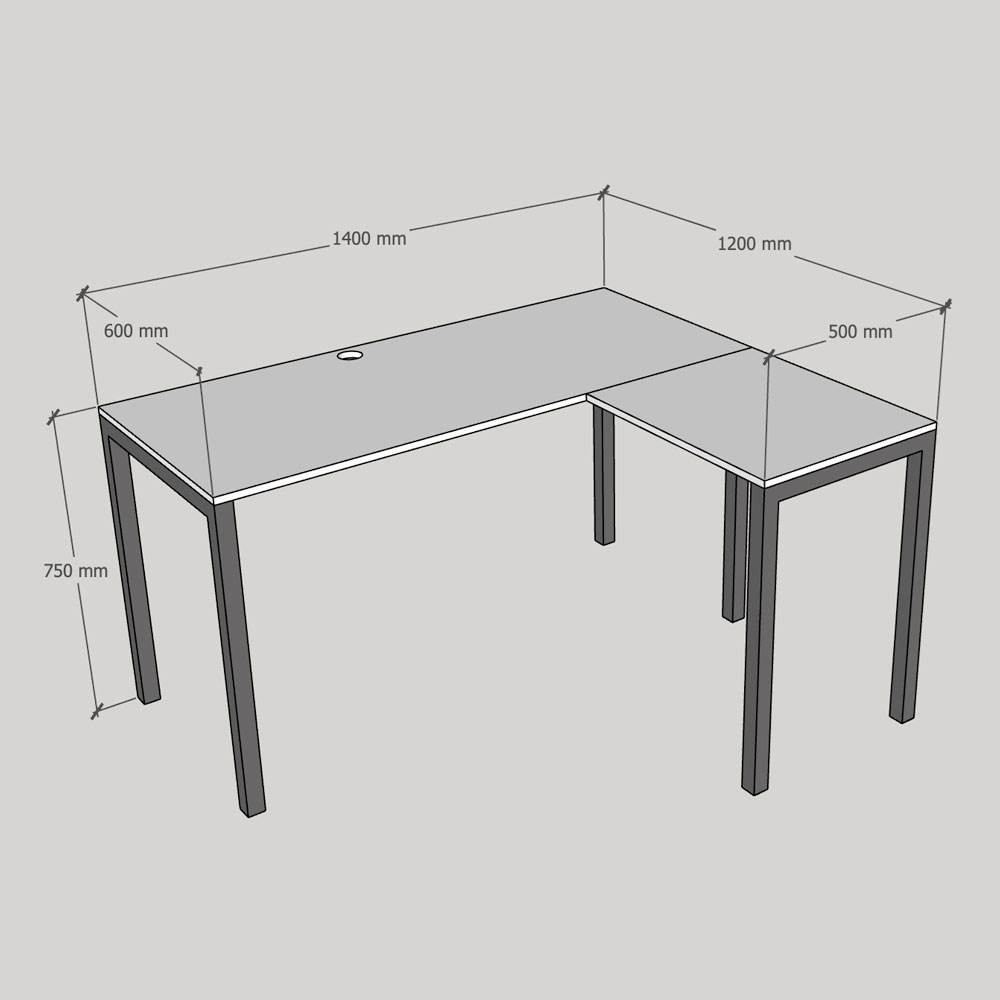 Bàn góc L 140x100cm gỗ cao su hệ UConcept HBUC069