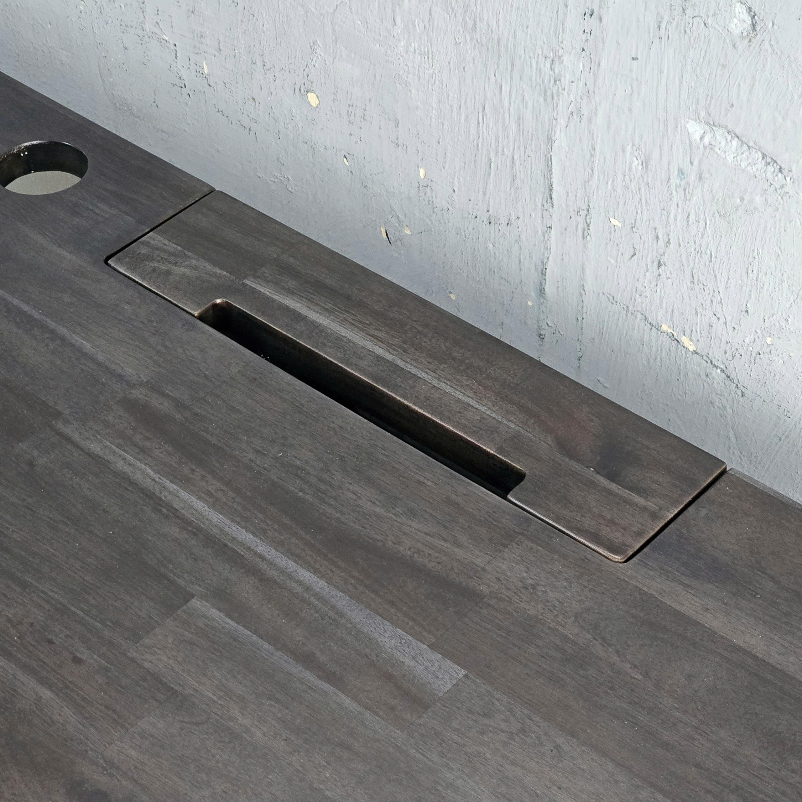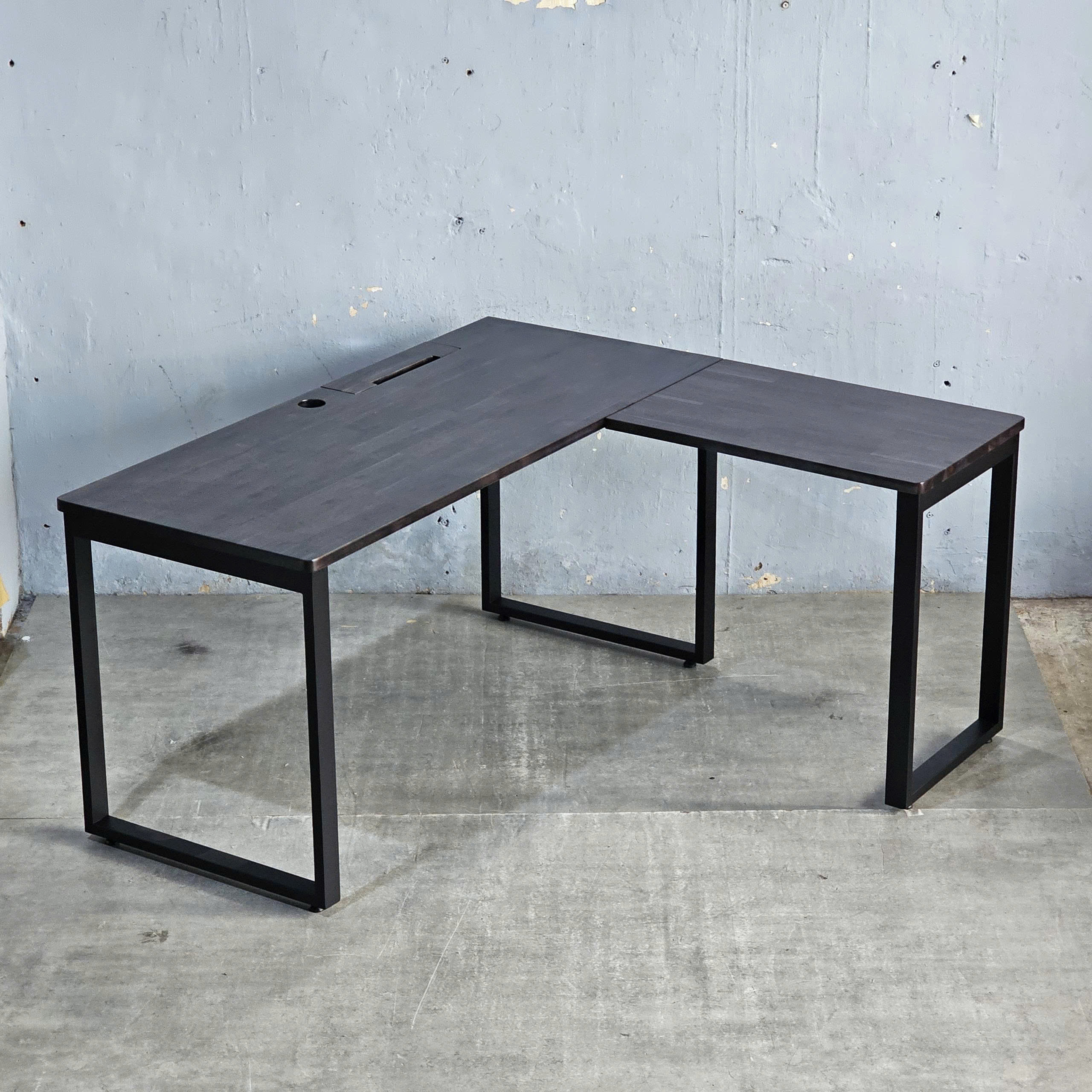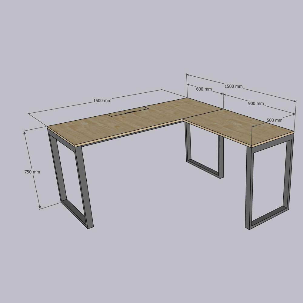 Bàn góc L có hộp điện 150x150cm gỗ tràm hệ Rectang HBRT120