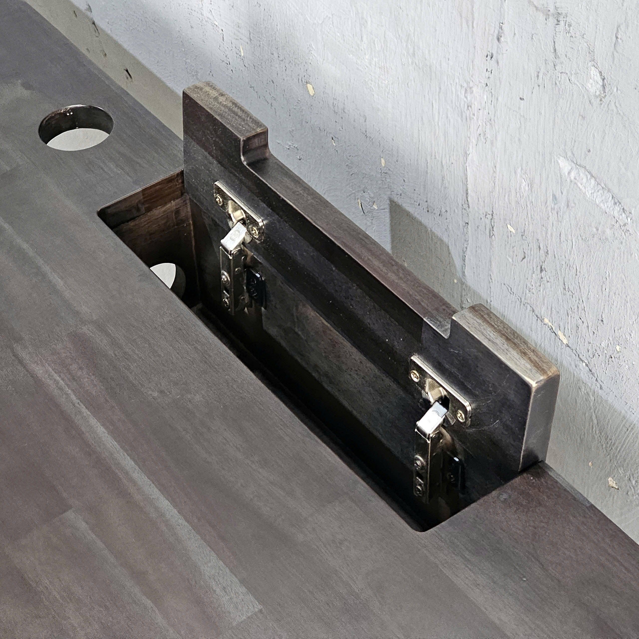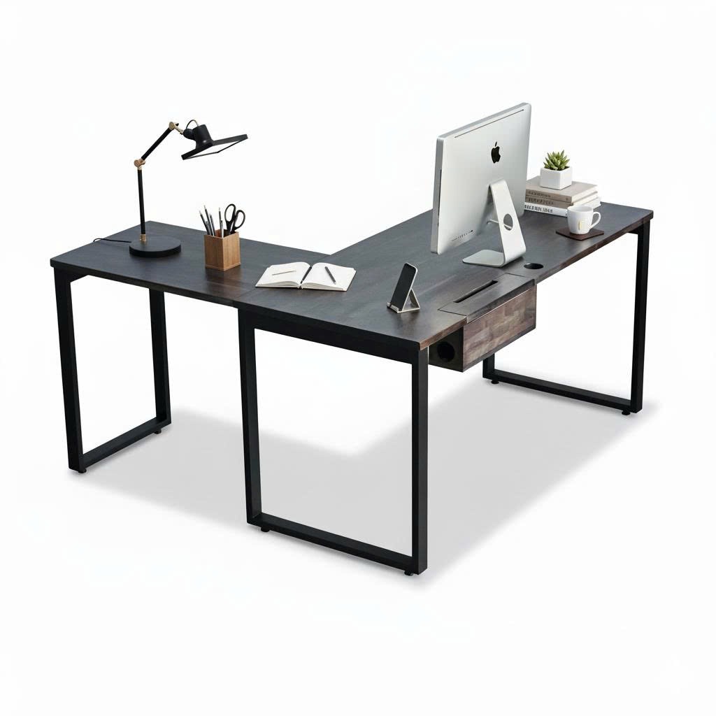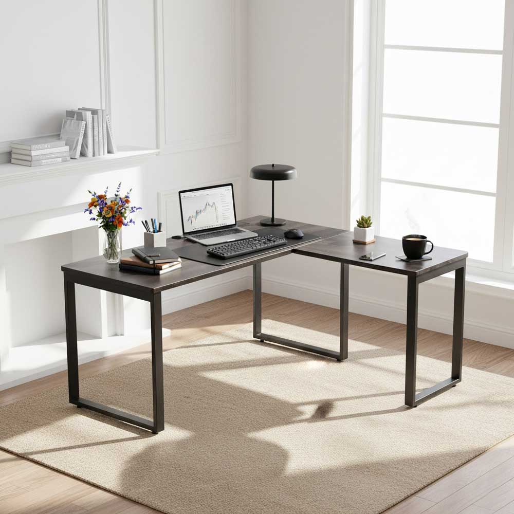 Bàn góc L có hộp điện 150x150cm gỗ tràm hệ Rectang HBRT120
