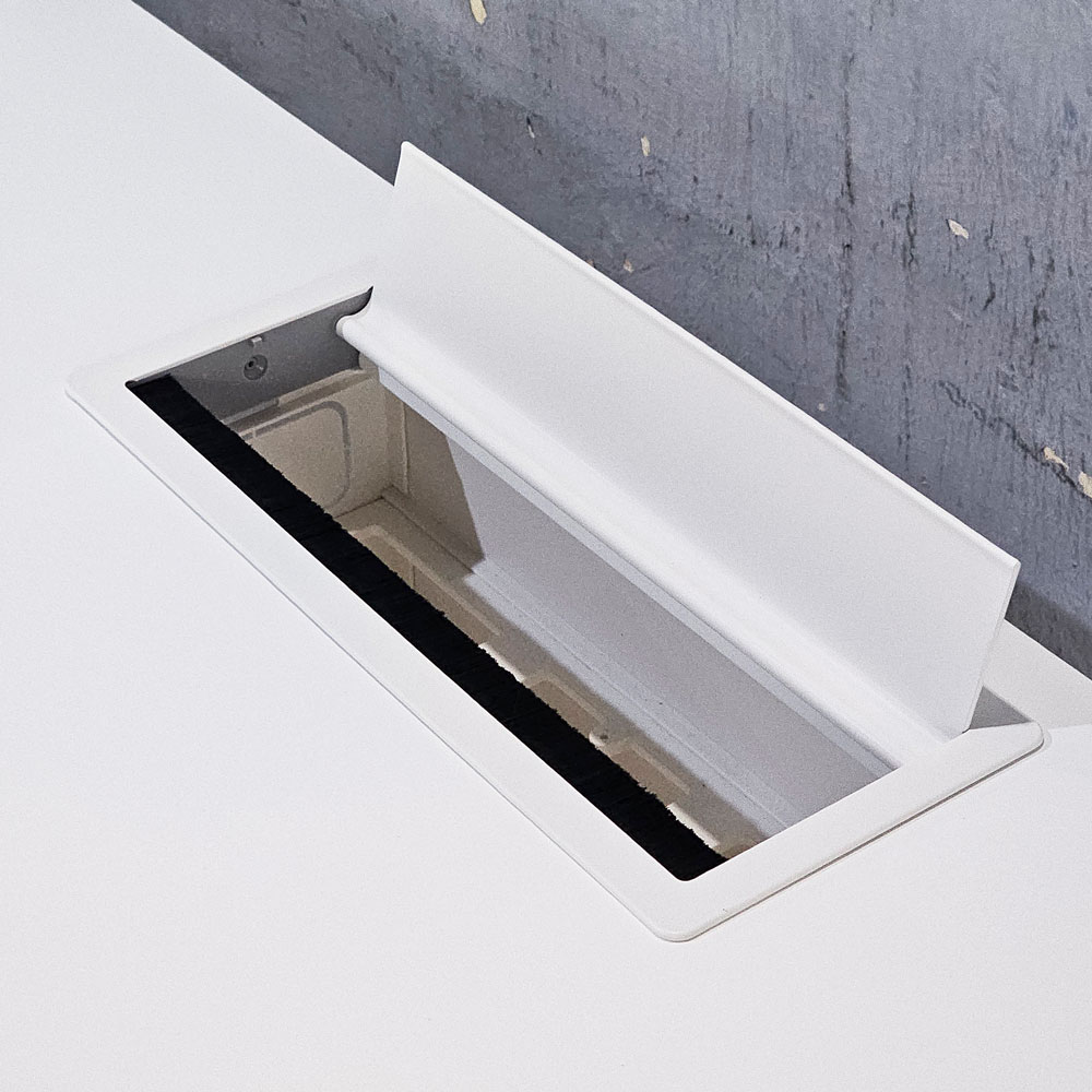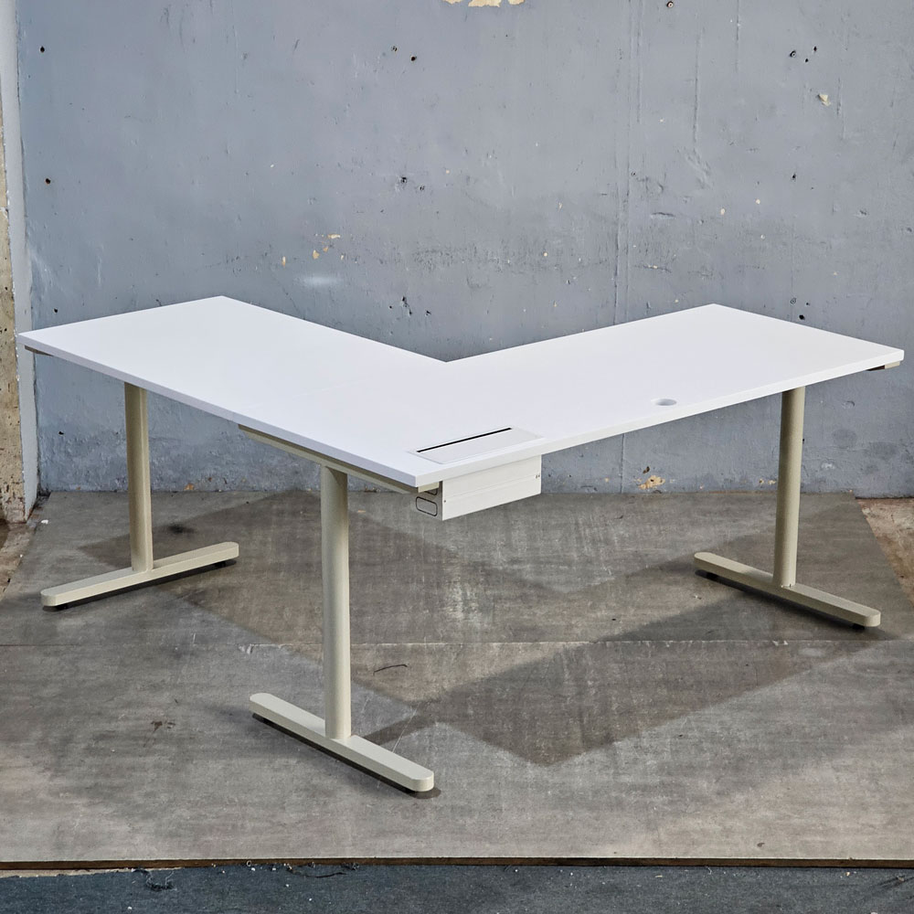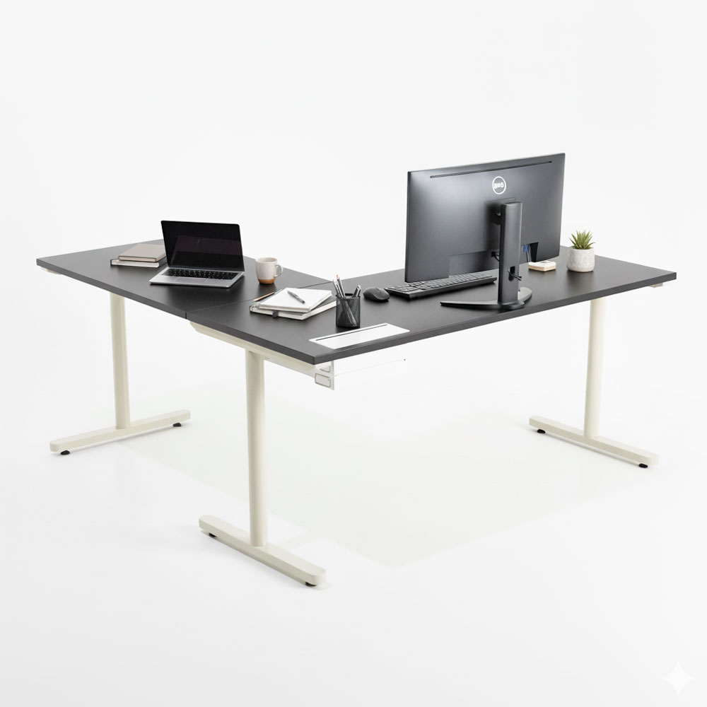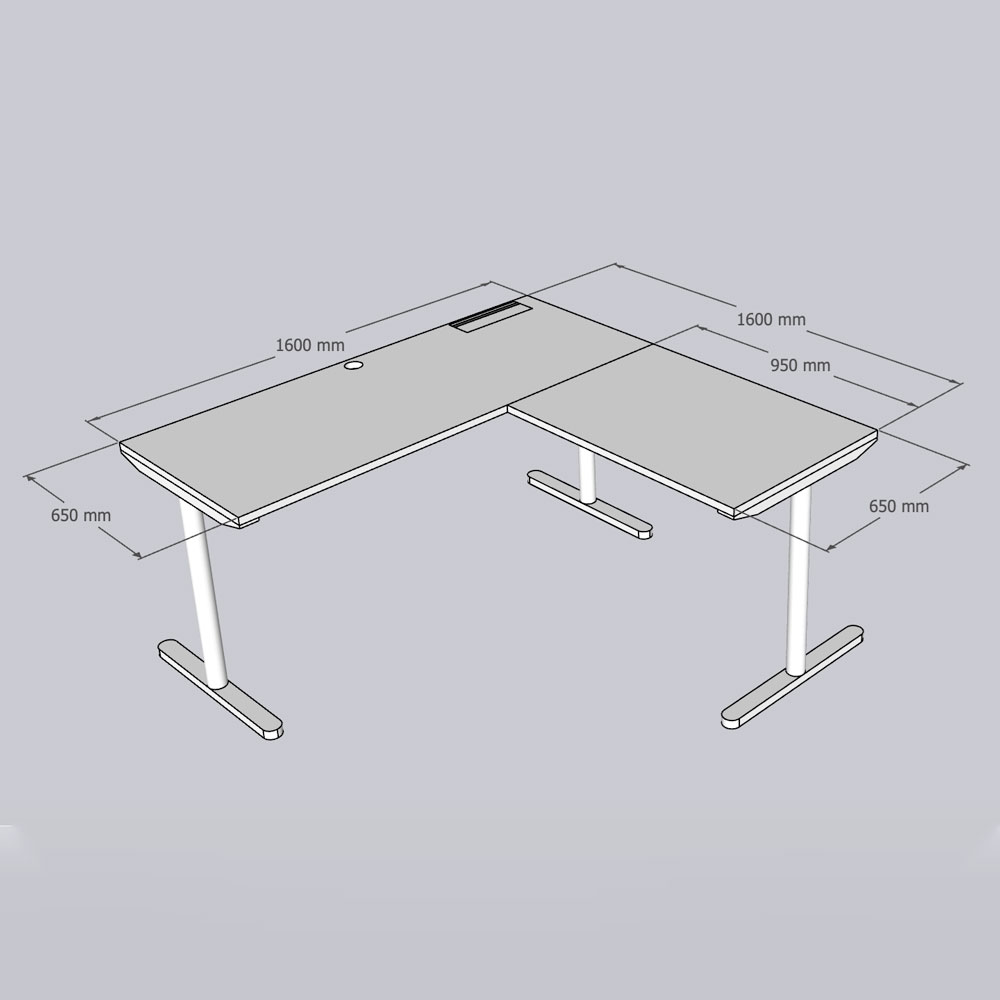 Bàn góc L có hộp điện 160x160cm gỗ tràm hệ TIO HBTO045