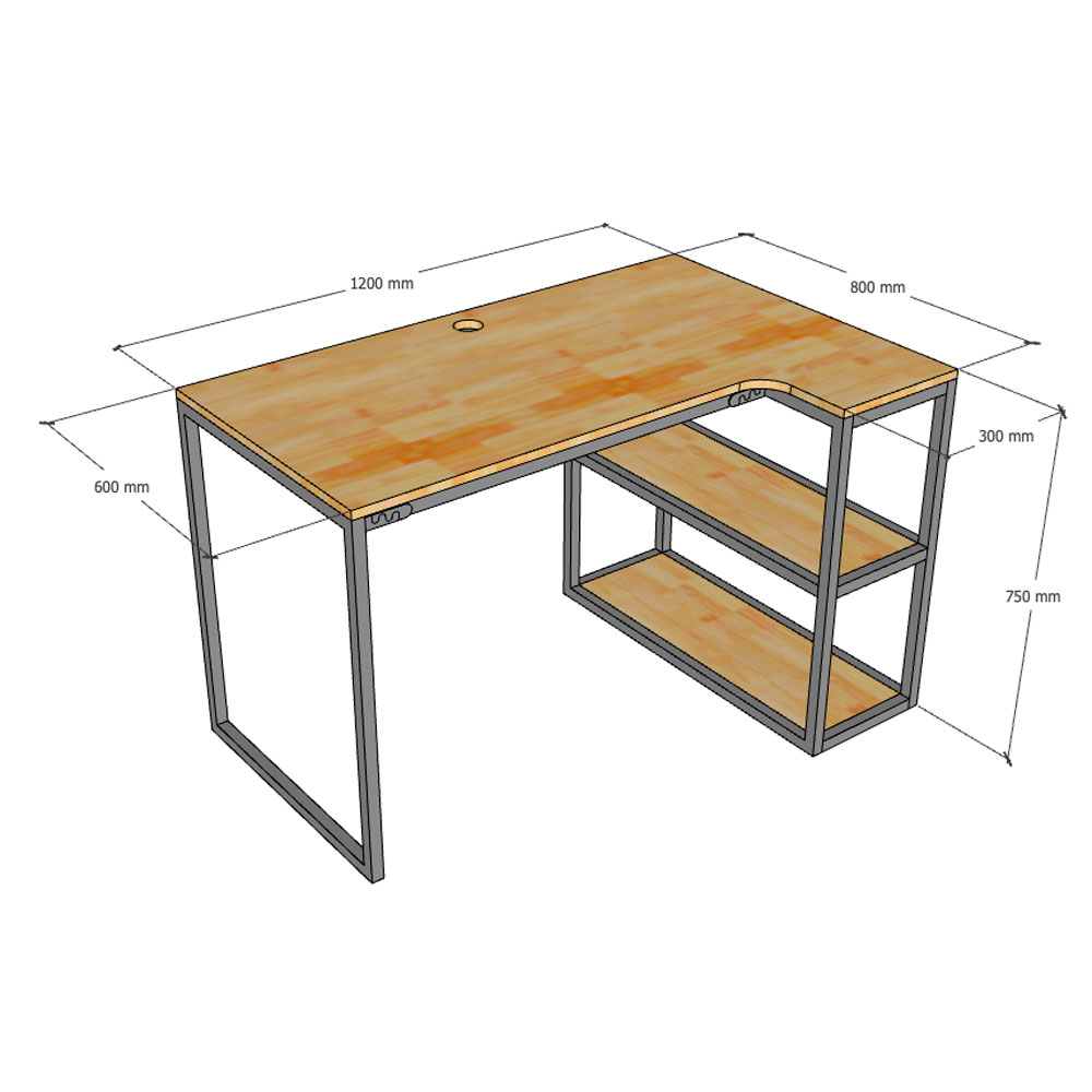 Bàn góc L liền kệ 120x80cm gỗ cao su CD68042