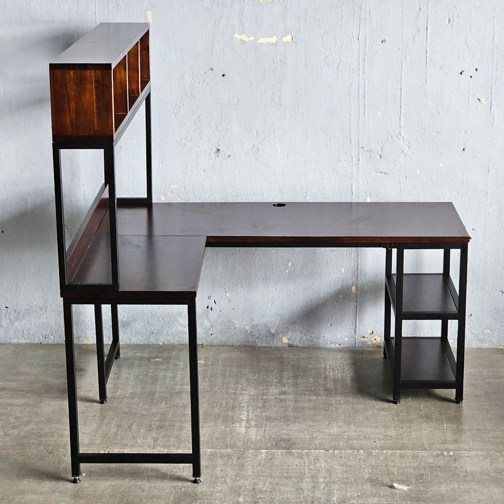 Bàn góc L liền kệ sách 160x140x158cm gỗ tràm FD68087