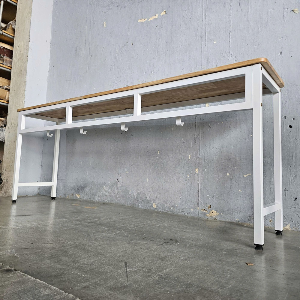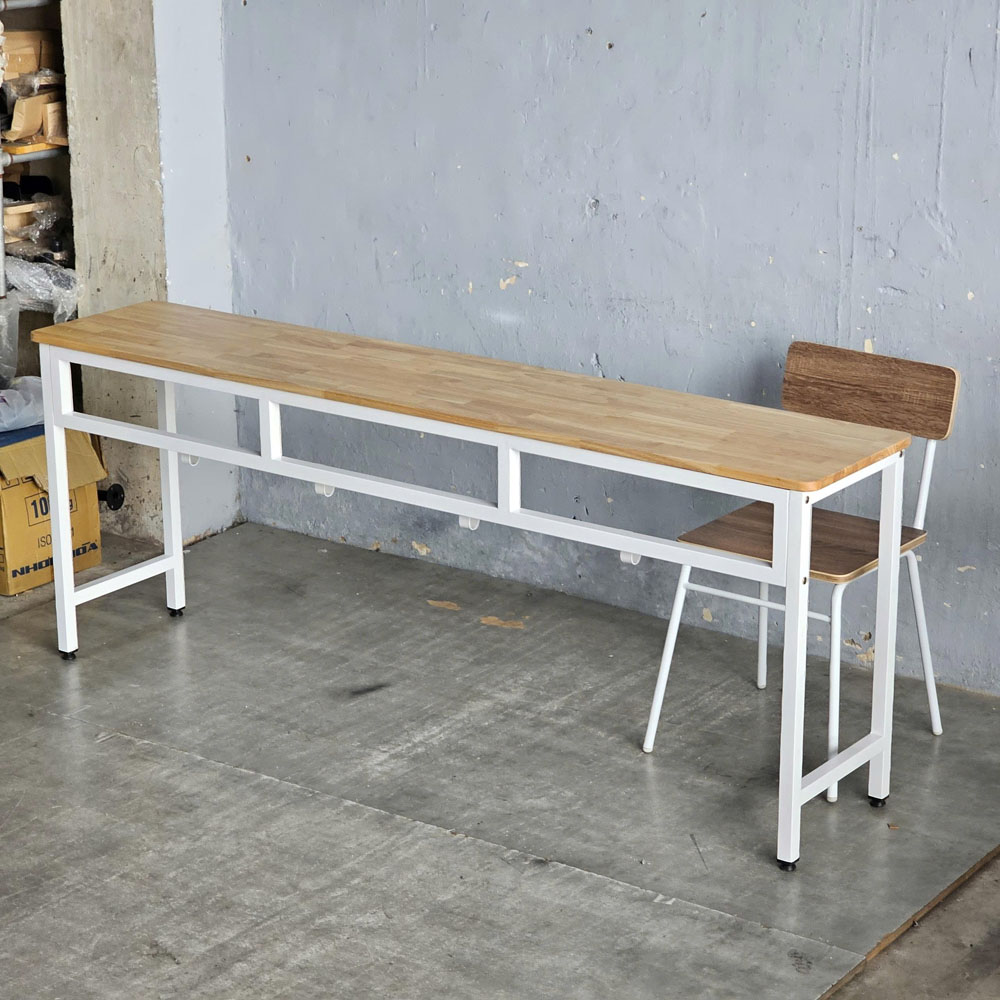 Bàn học lớp học thêm 195x40x75cm gỗ cao su khung chân sắt BGHS011