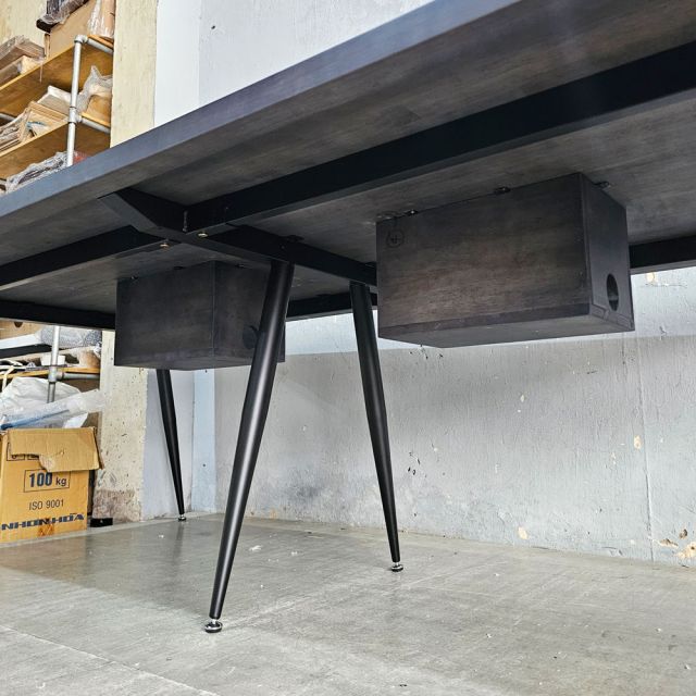- Mặt bàn gỗ cao su tiêu chuẩn AA dày 17mm.