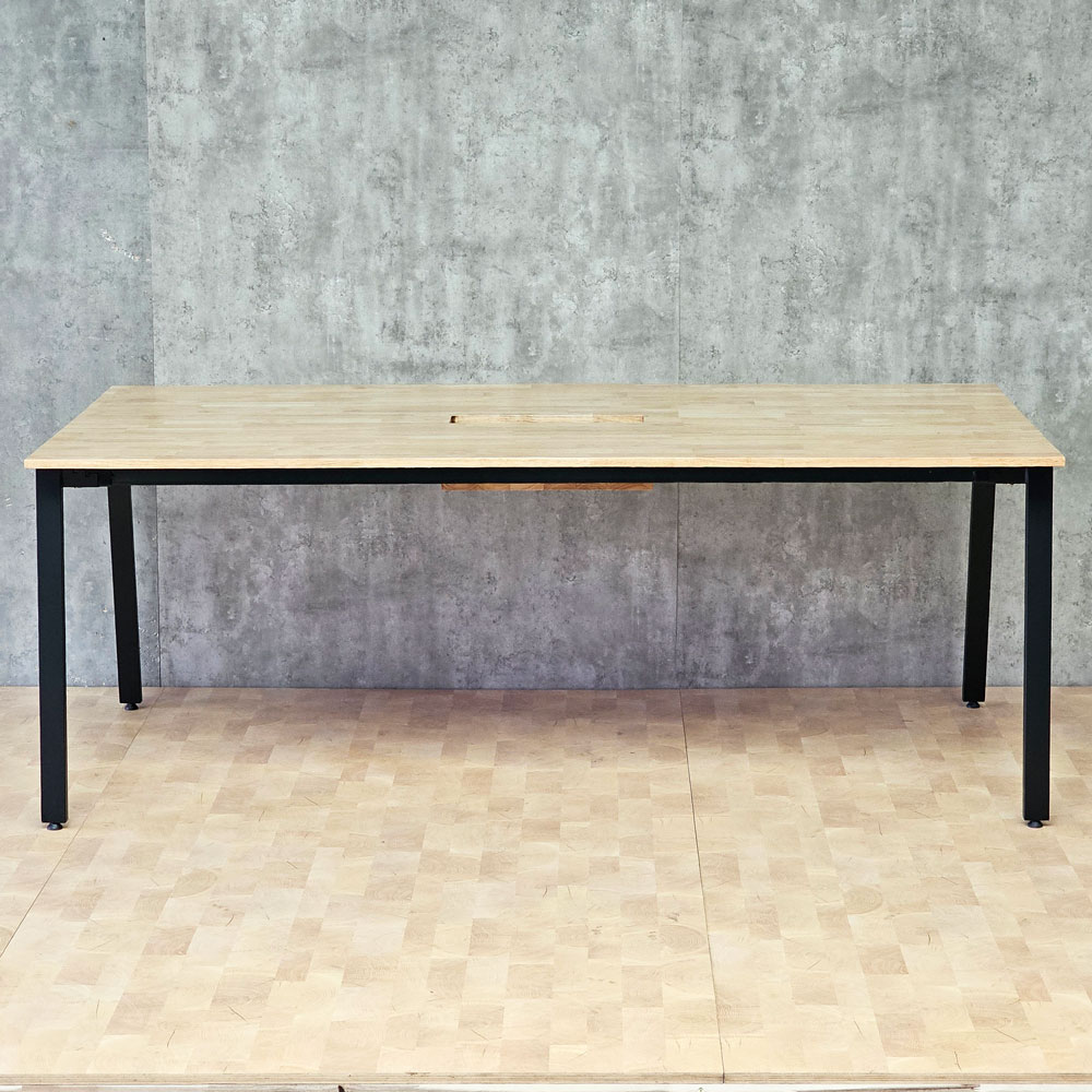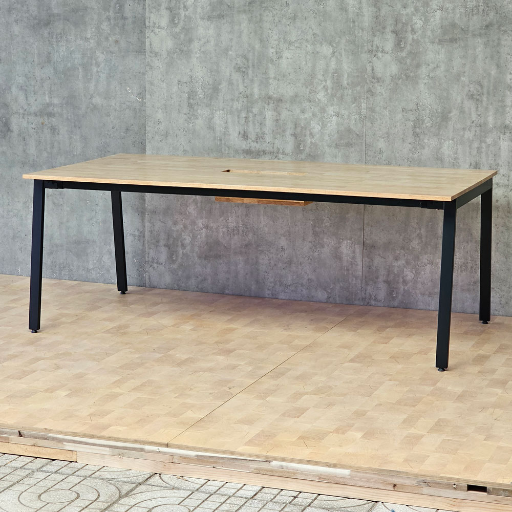 Bàn Họp HBAT011 Aton Concept chân sắt chữ nhật 25x50. Bàn văn phòng gỗ cao su ghép tiêu chuẩn AA dày 17mm PU màu gỗ tự nhiên luôn có một vẻ đẹp riêng, thân thiện với môi trường, đối với các văn phòng mở, văn phòng kết hợp với cây xanh thì việc sử dụng bàn gỗ cao su chân sắt kết hợp trở nên hoàn hảo. Chất liệu gỗ cao su tại Home Office là gỗ ghép dày 17mm tiêu chuẩn AA ( 2 mặt đẹp) được xử lý qua 4 công đoạn trước khi PU hoàn thiện cho bề mặt sản phẩm rất đẹp mắt, chống nước tuyệt đối. Khung chân sắt sơn tĩnh điện với cơ cấu ngàm lắp ráp dễ dàng.