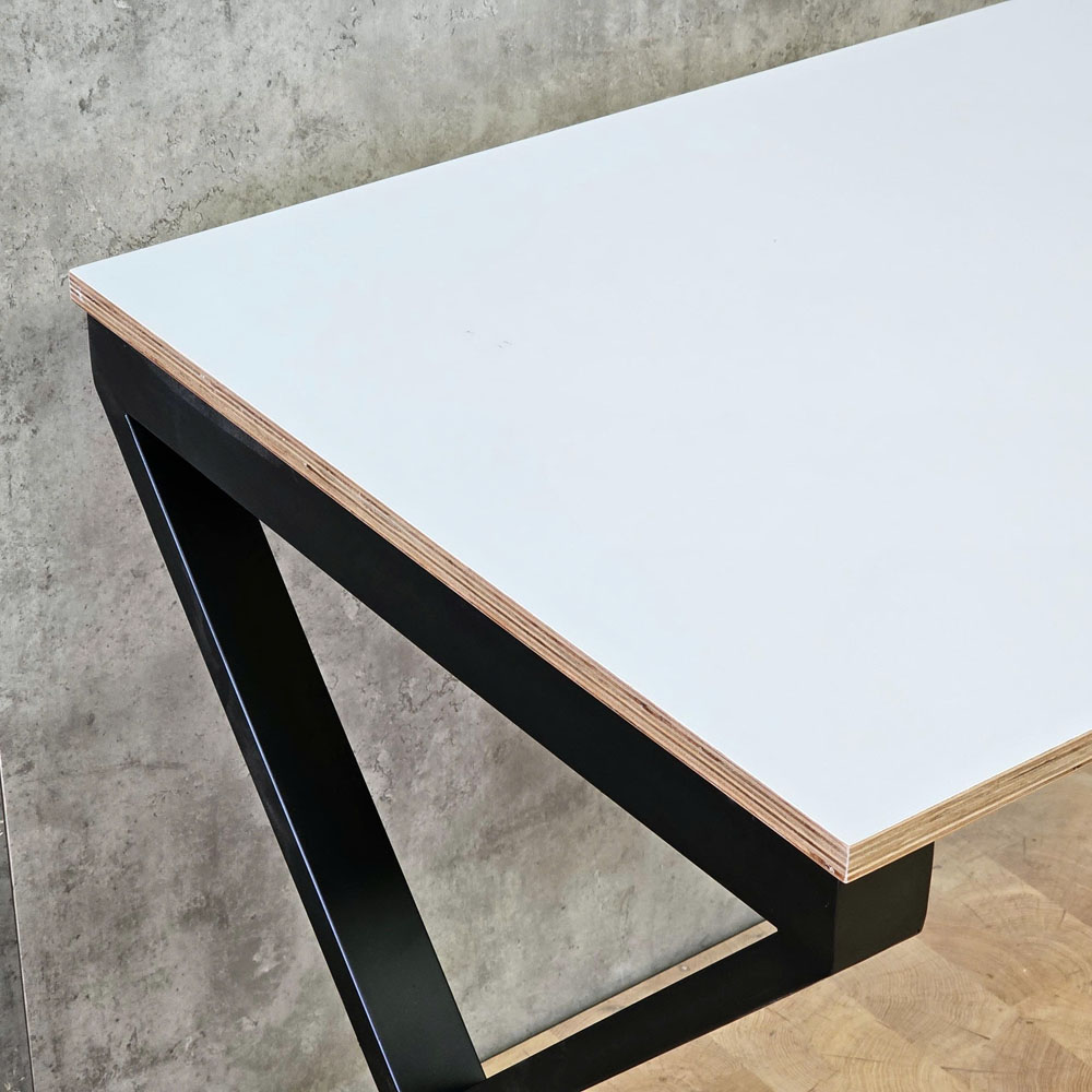 - Gỗ plywood dày 18mm, mặt bàn đã xử lý phủ melamin, để lộ cạnh