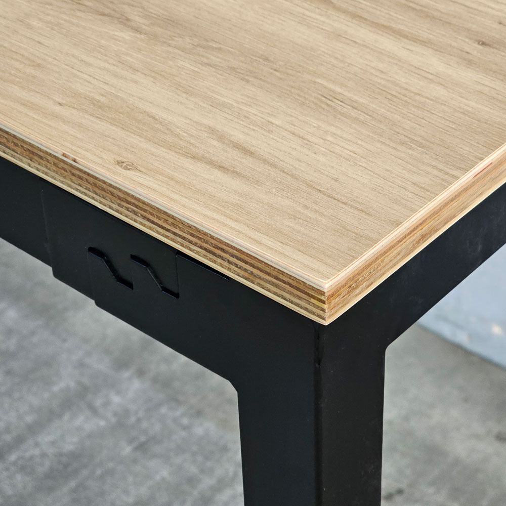 - Gỗ plywood đạt chuẩn E0, để lộ cạnh, phủ PU chống thấm