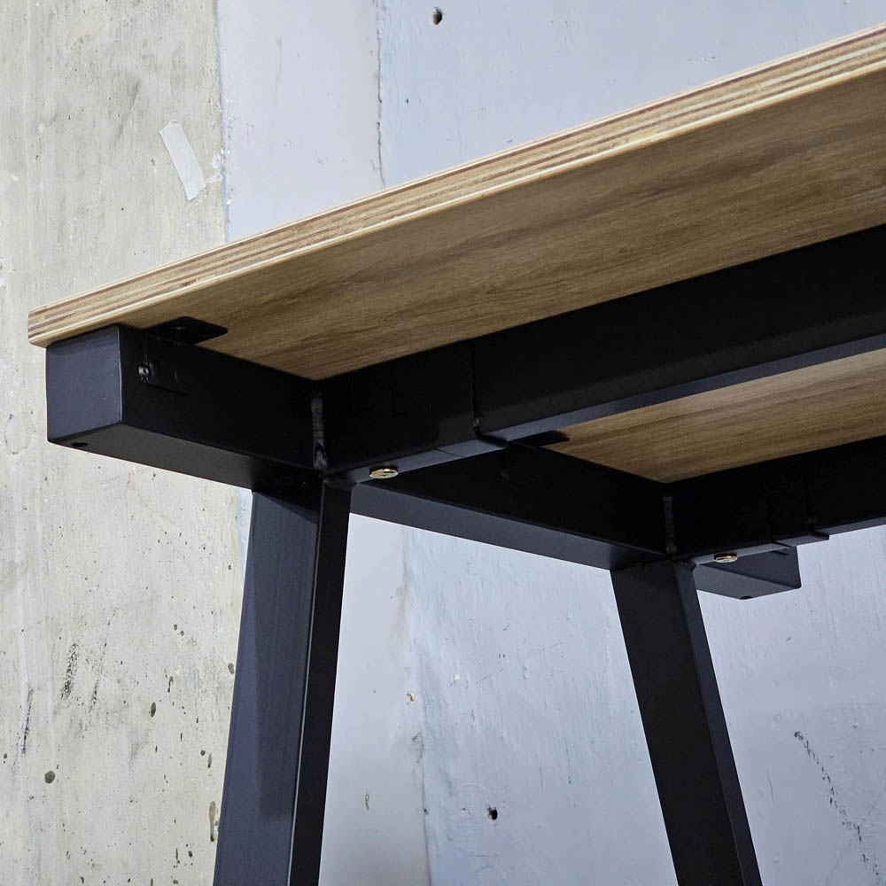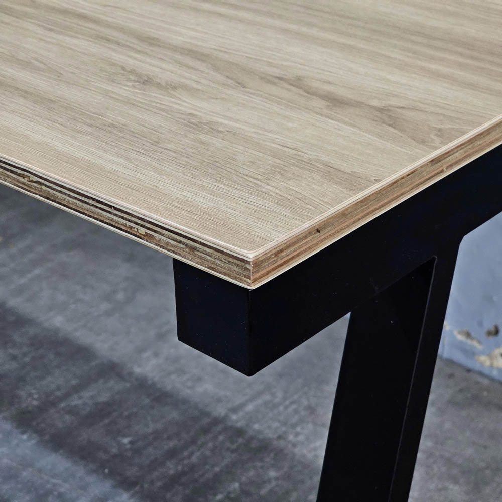 - Gỗ plywood dày 25mm, chuẩn E0, để lộ cạnh và PU chống thấm đã xử lý chà nhám.