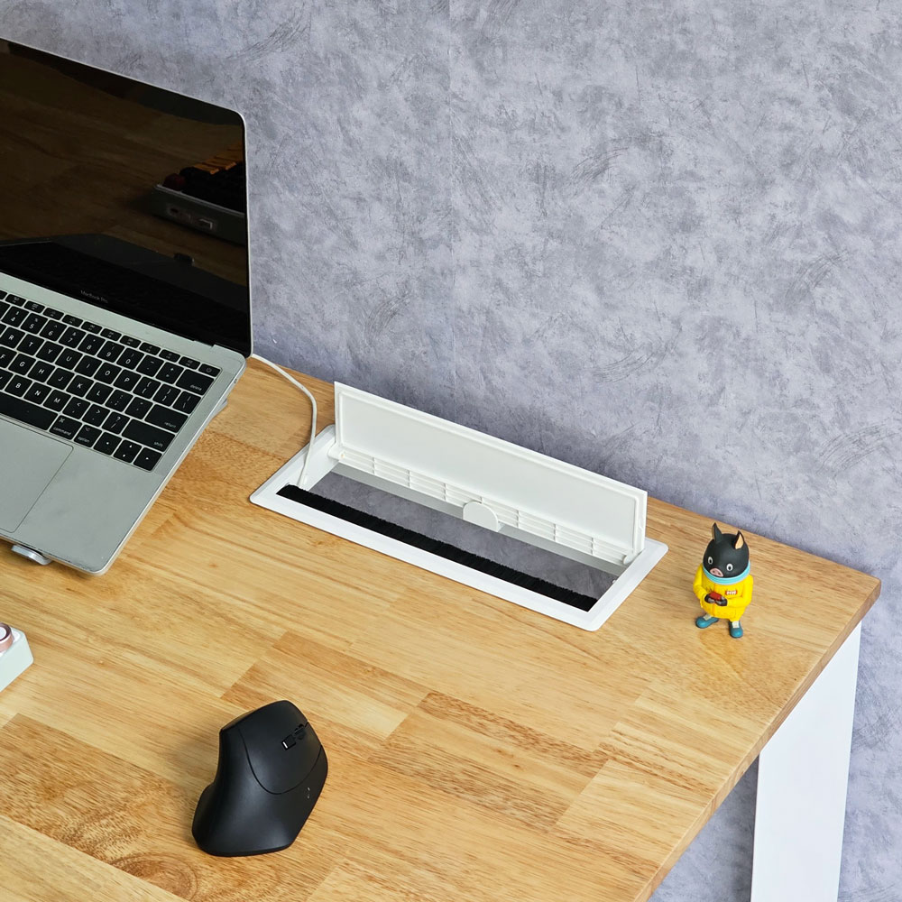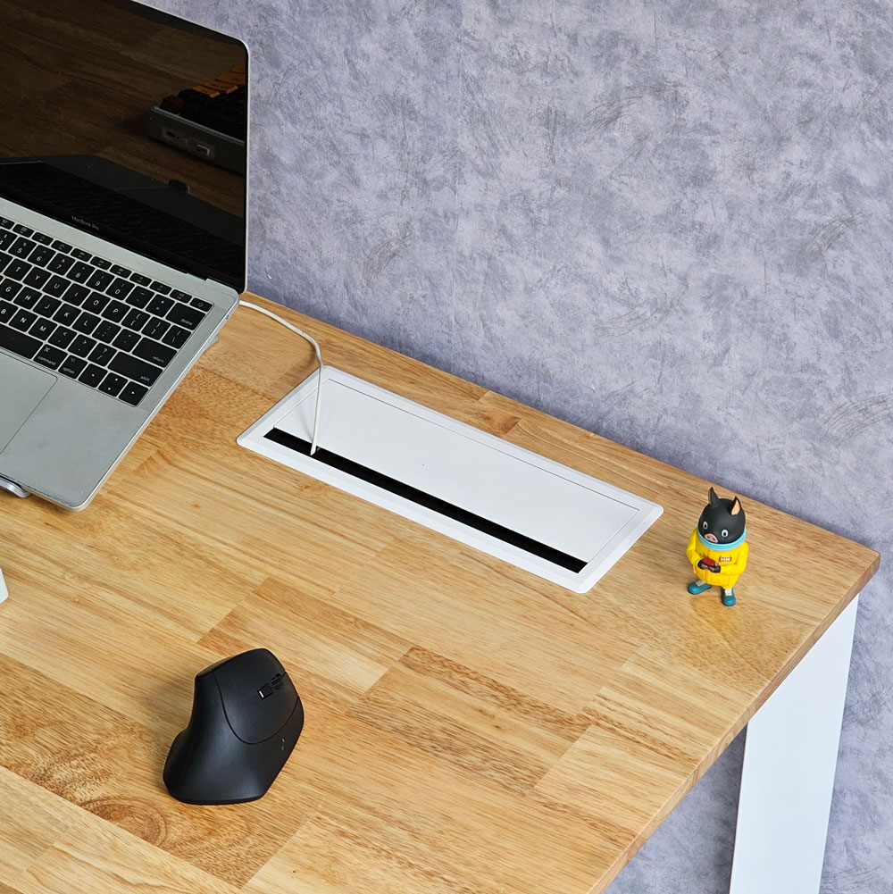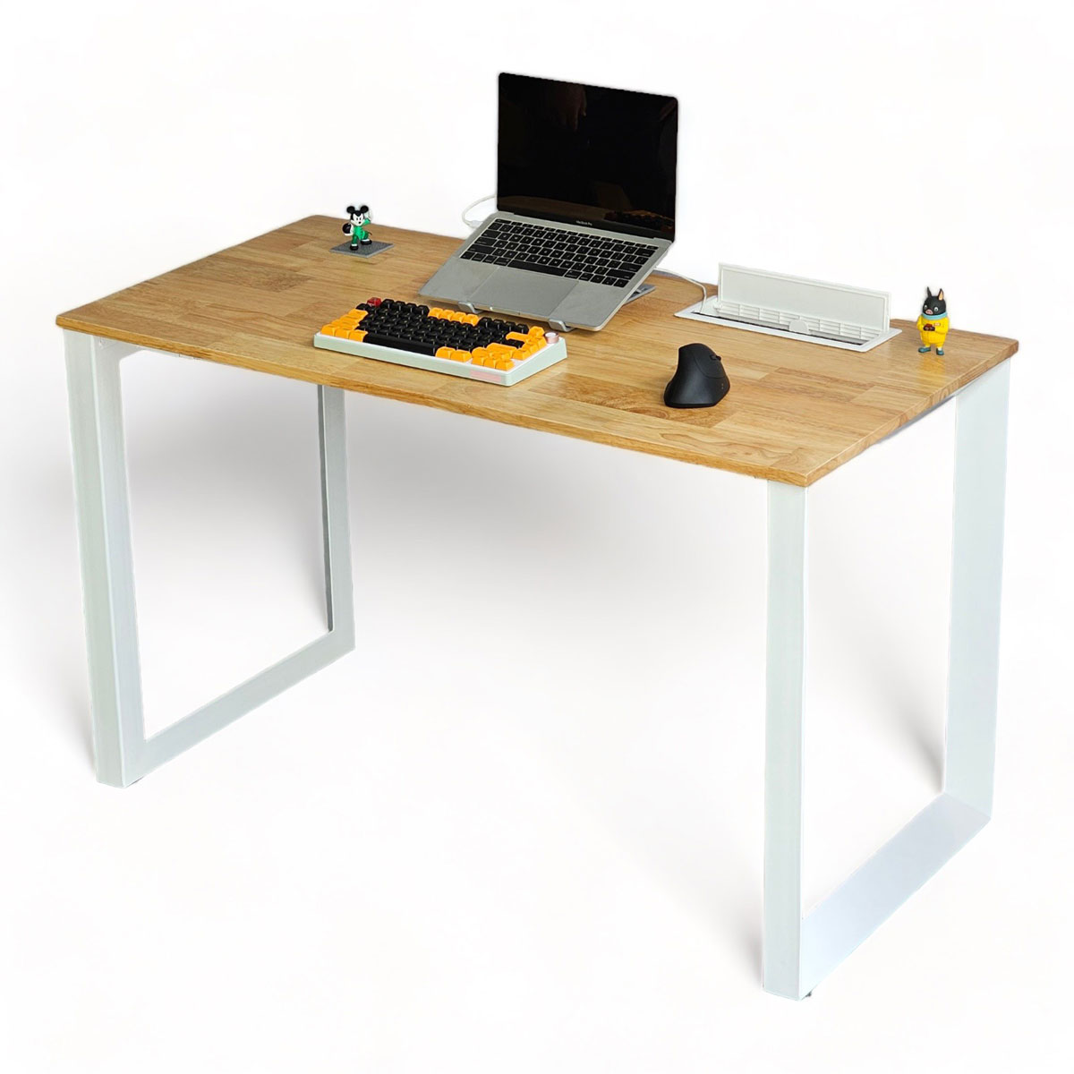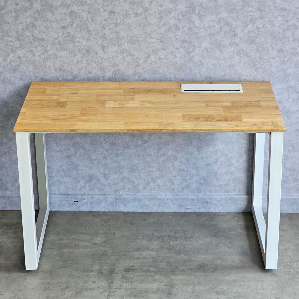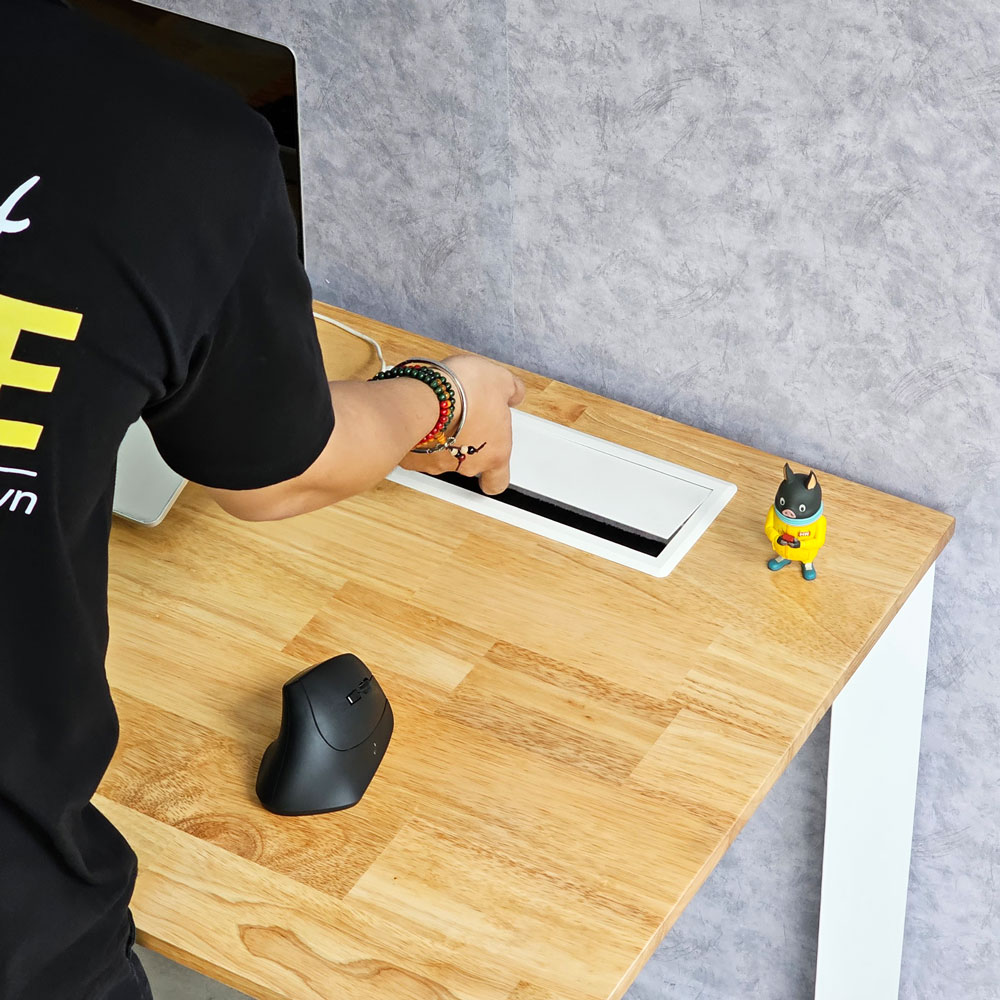 Bàn làm việc có nắp hộp điện 120x60cm gỗ cao su chân sắt lắp ráp hệ Trian HBTA023