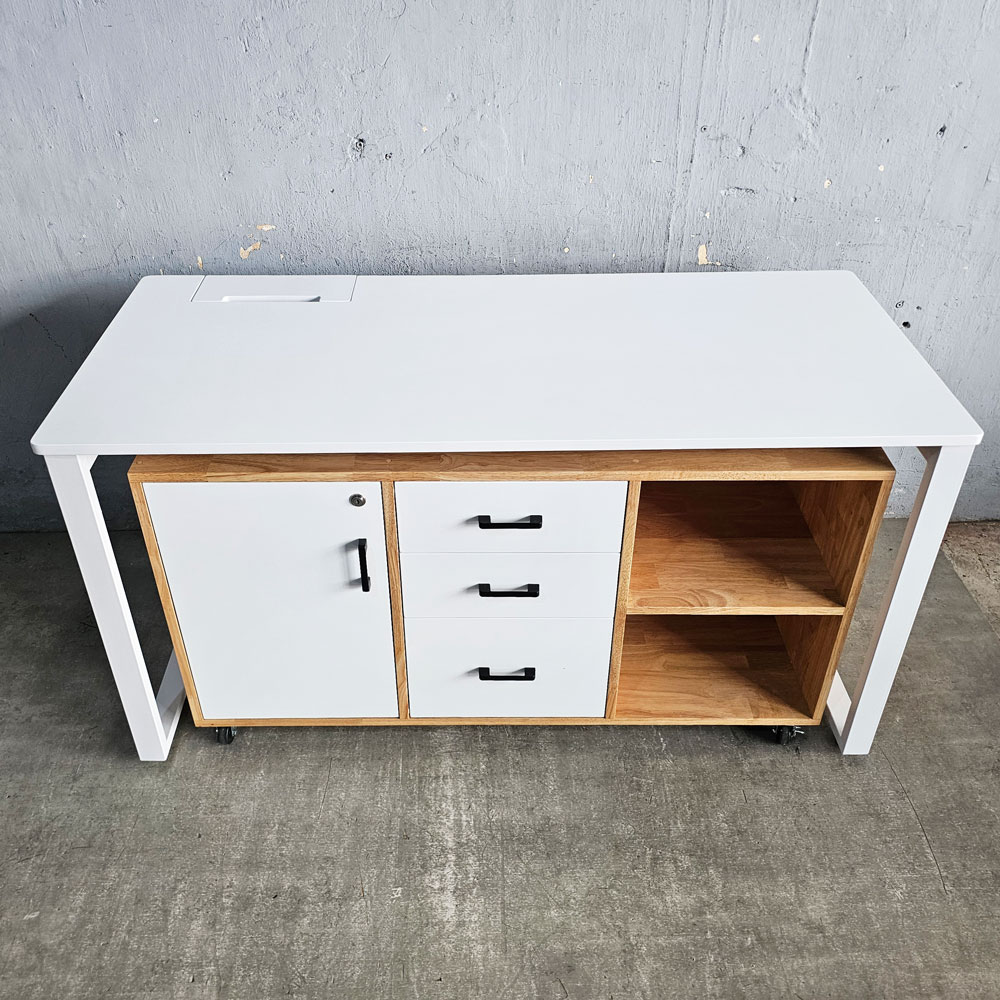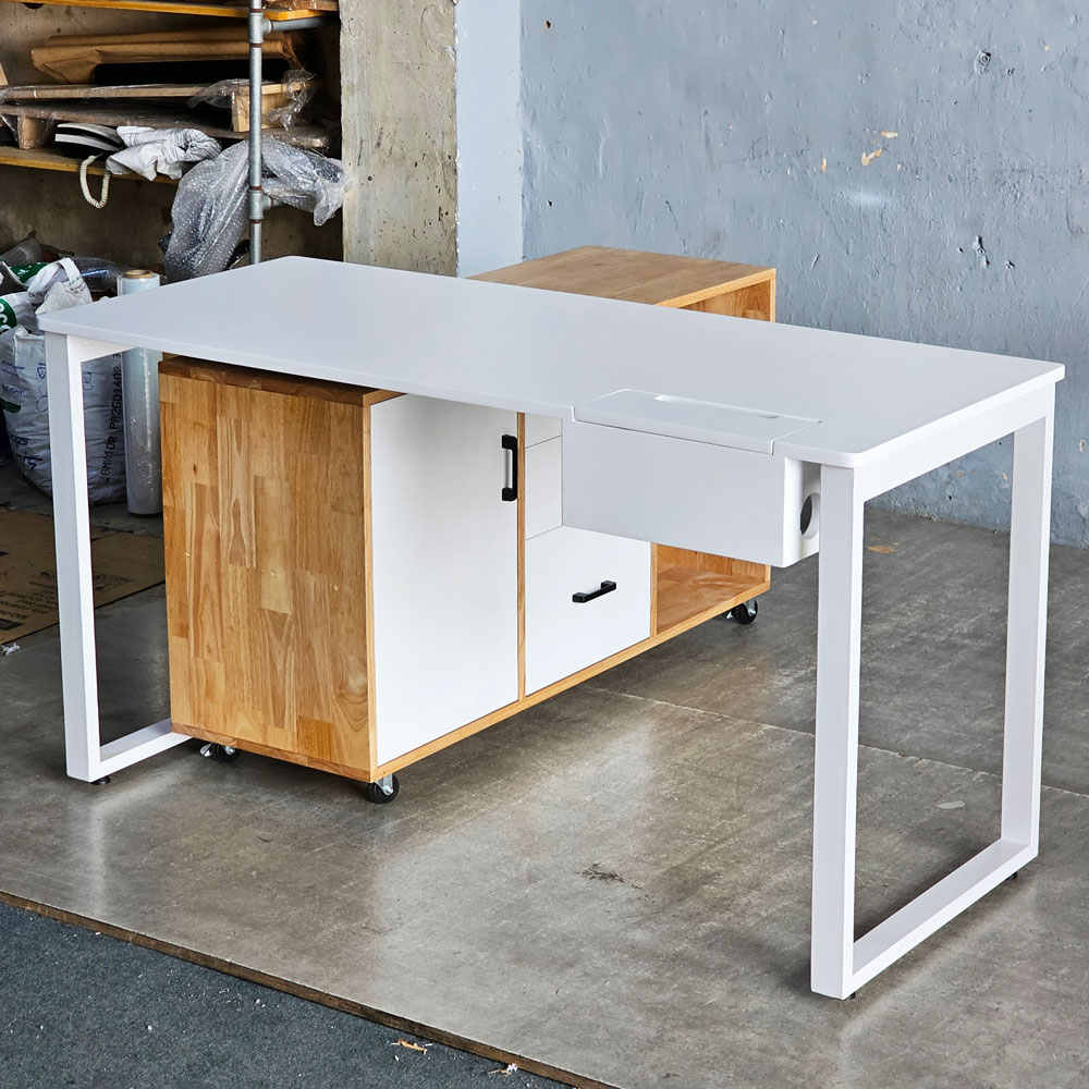 Bàn làm việc có tủ di động 140x60cm gỗ cao su hệ Rectang HBRT127