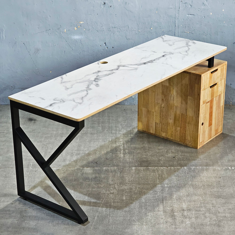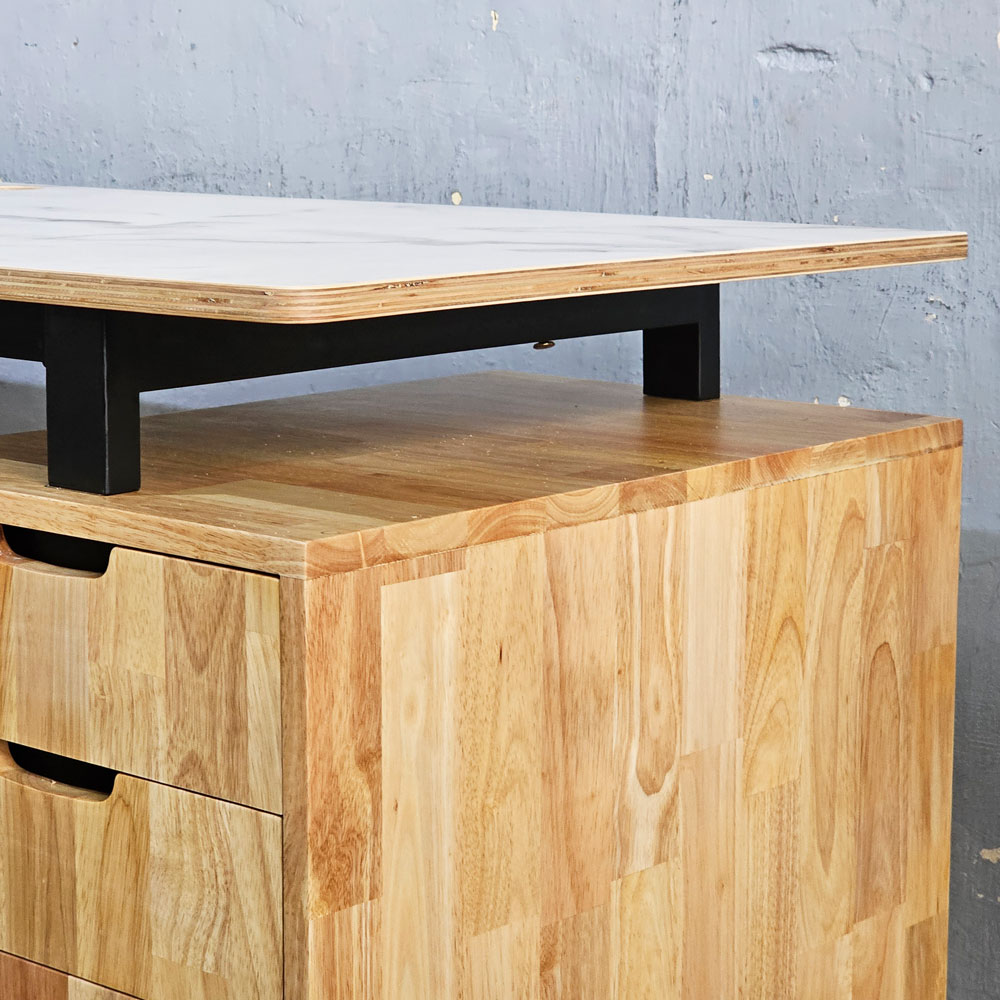 Bàn làm việc gác tủ 180x60cm plywood tủ gỗ cao su HBKC057