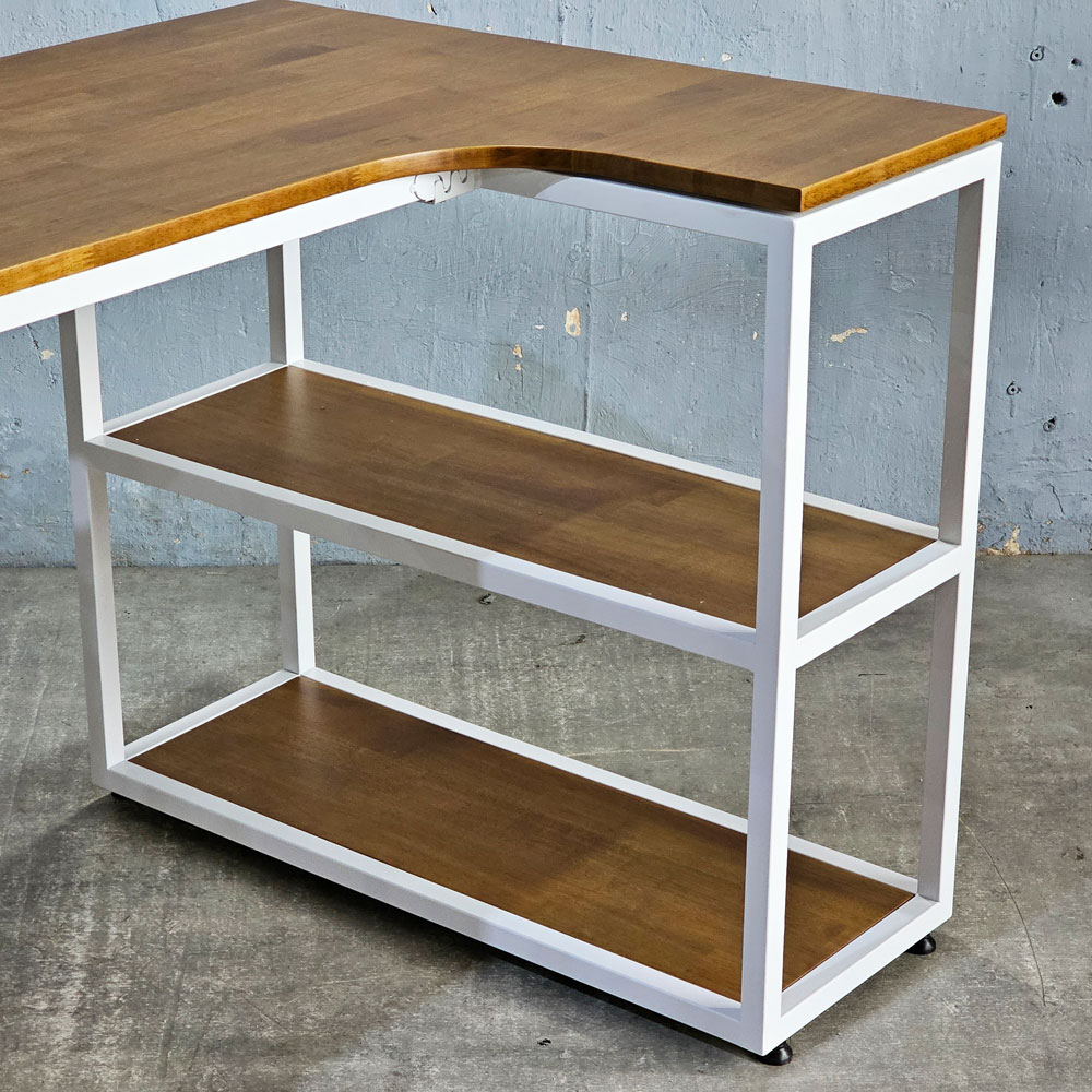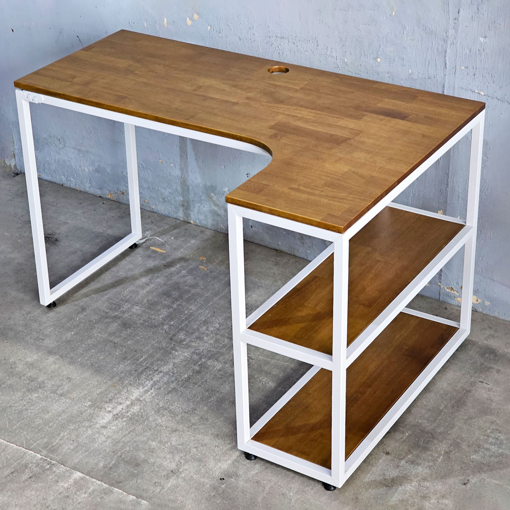 Bàn góc L liền kệ 120x100cm gỗ cao su CD68019