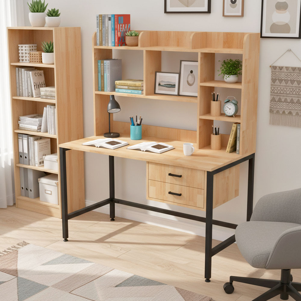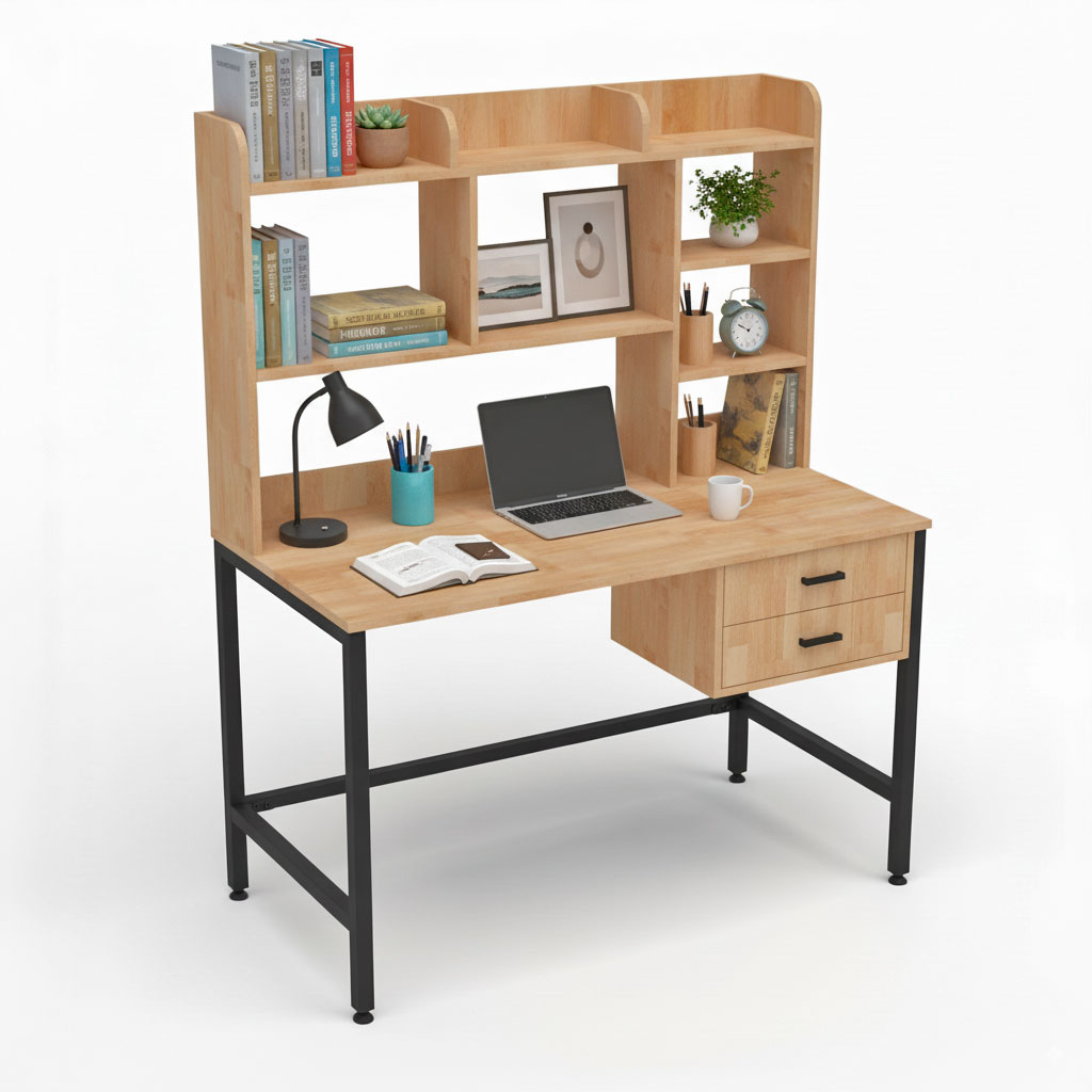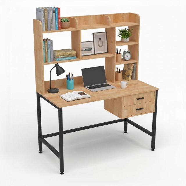Bàn làm việc liền giá sách 120x60x150cm gỗ cao su FD68082