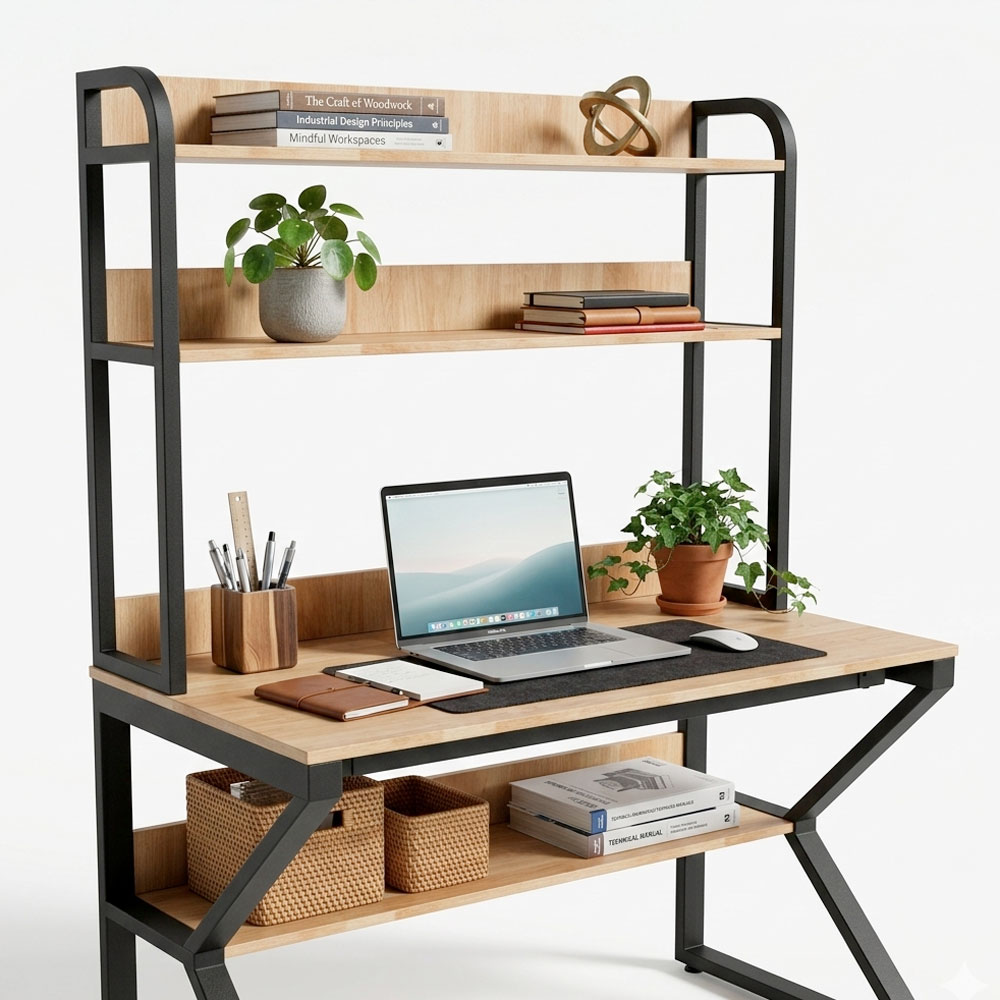 Bàn liền kệ sách chữ K 120x70x165cm gỗ cao su FD68087