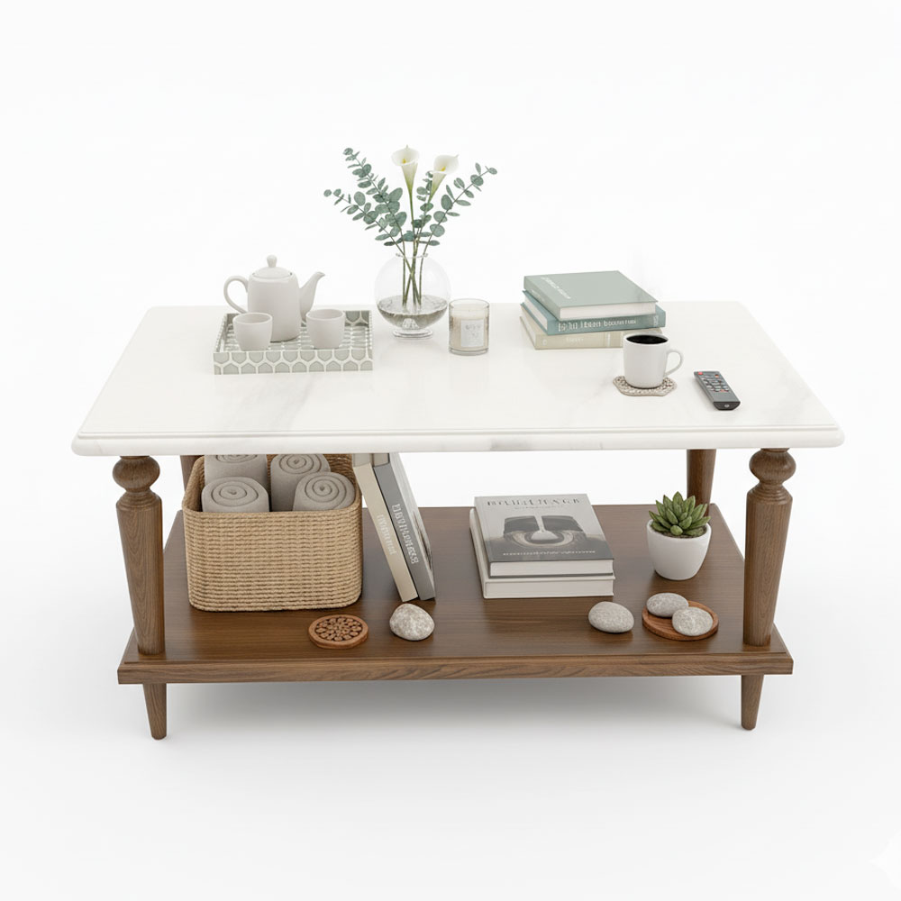 - Màu sắc: Gỗ có 3 màu tùy chọn - Mặt bàn đá màu trắng