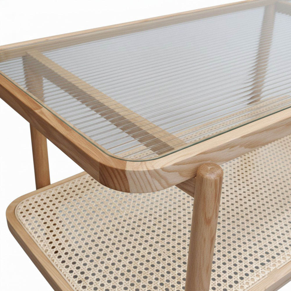 Bàn sofa chữ nhật 150x50cm mặt kính gỗ tần bì TT68354