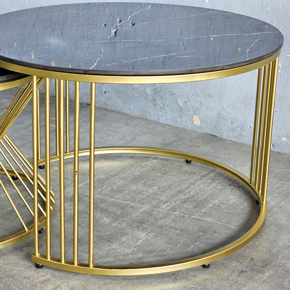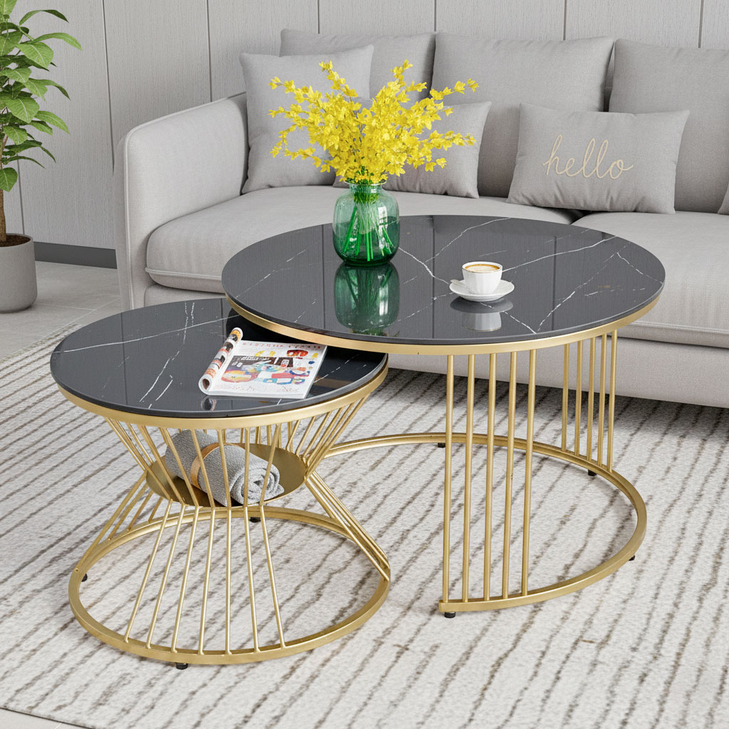 Bàn sofa đôi mặt đá khung sắt TT68214 là mẫu bàn sofa kép hay bàn sofa đôi được kết hợp từ 2 bàn riêng lẻ và thường có kích thước khác nhau. Điểm nổi bật của bàn sofa đôi, bàn trà TT68165 là khung sắt có thiết kế độc đáo tạo điểm nhấn cho sản phẩm thêm phần nổi bật. Mặt bàn vân đá kết hợp khung sắt uốn cong sơn màu vàng đồng mang đến vẻ đẹp sang trọng, giúp nâng tầm giá trị thẩm mỹ cho không gian sử dụng.