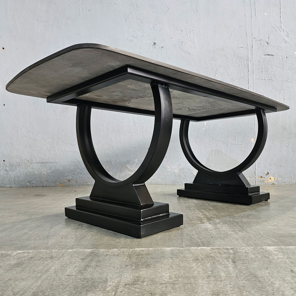 Bàn Sofa TT68131 kích thước lớn 120x55cm và cao 45cm với thiết kế chân sắt vô cùng độc đáo sơn tĩnh điện bền bỉ kiểu chân mang nét cổ điển kết hợp với mặt ceramic vân mây sọc rõ nét bóng rất đẹp, đá dày 15mm với khung sắt đỡ rất chắc chắn, cạnh đá được mài nhắn mềm mại nên rất an toàn khi sử dụng. Mẫu bàn Sofa TT68031 có thể dùng kết hợp trong rất nhiều không gian phòng khách cho vẻ đẹp sang trọng.