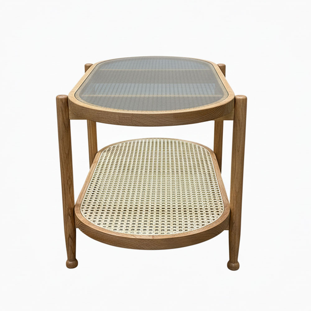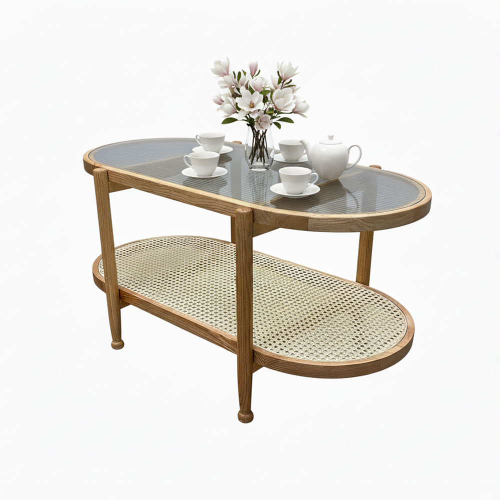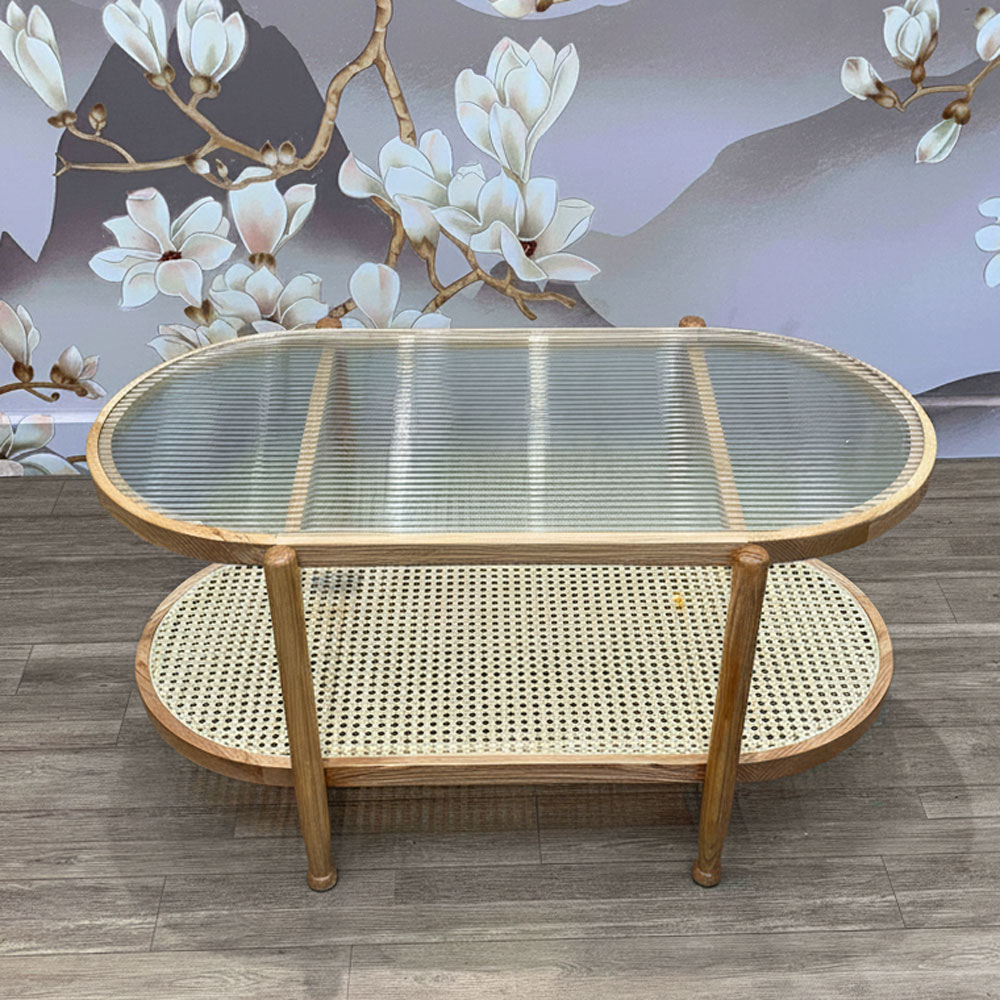 Bàn sofa Oval 2 tầng mặt kính 100x50cm gỗ tần bì TT68348