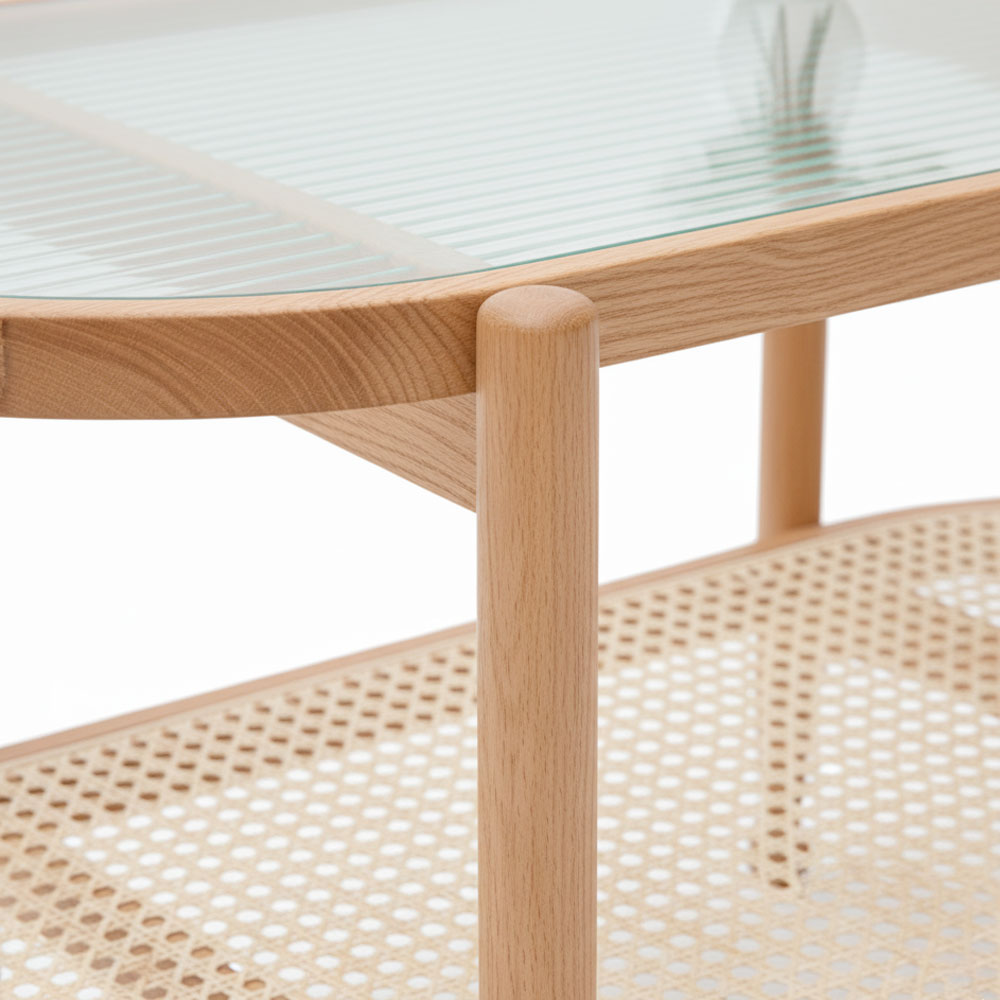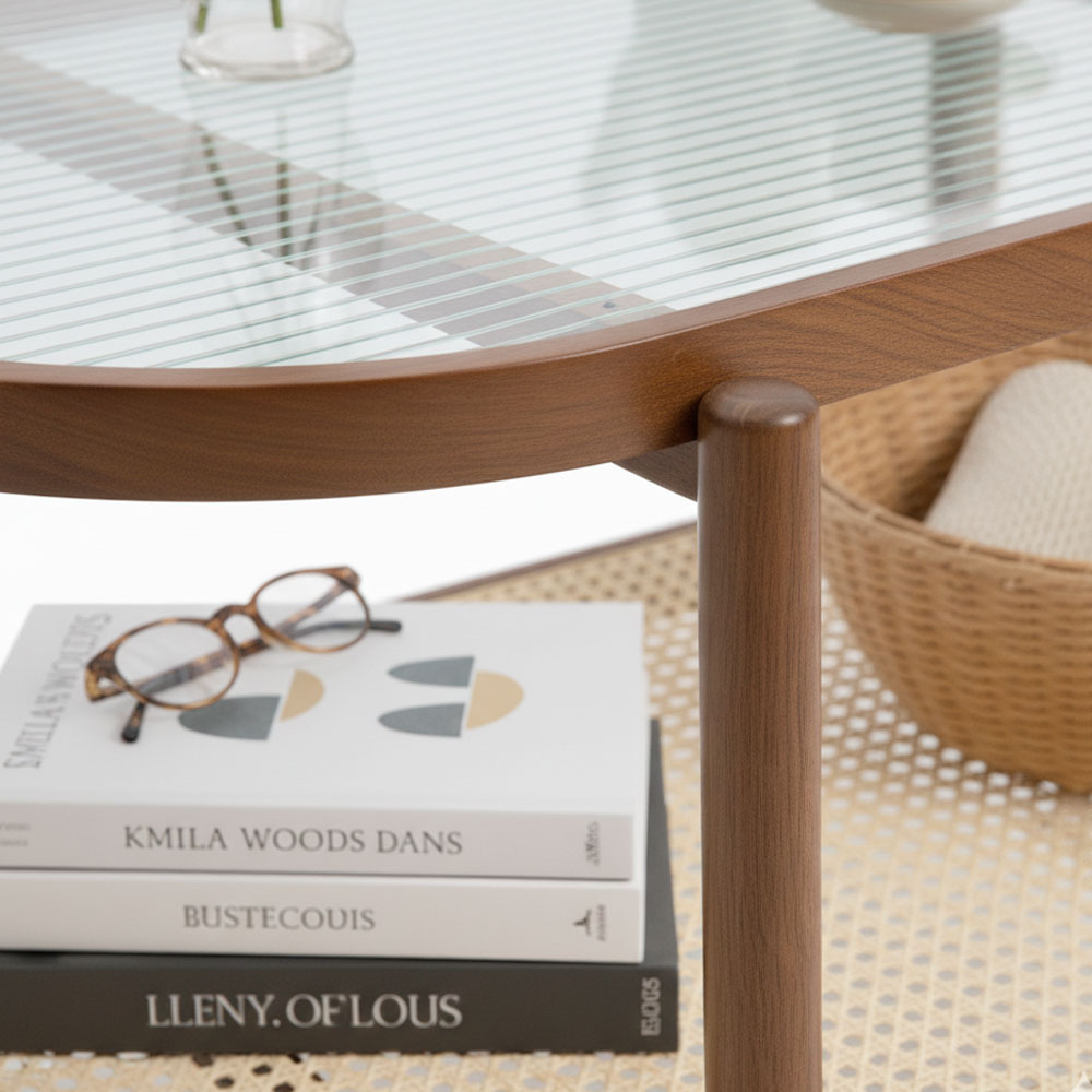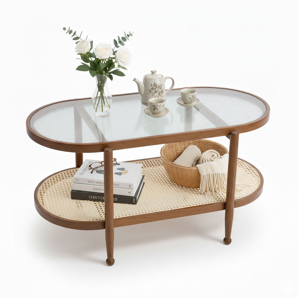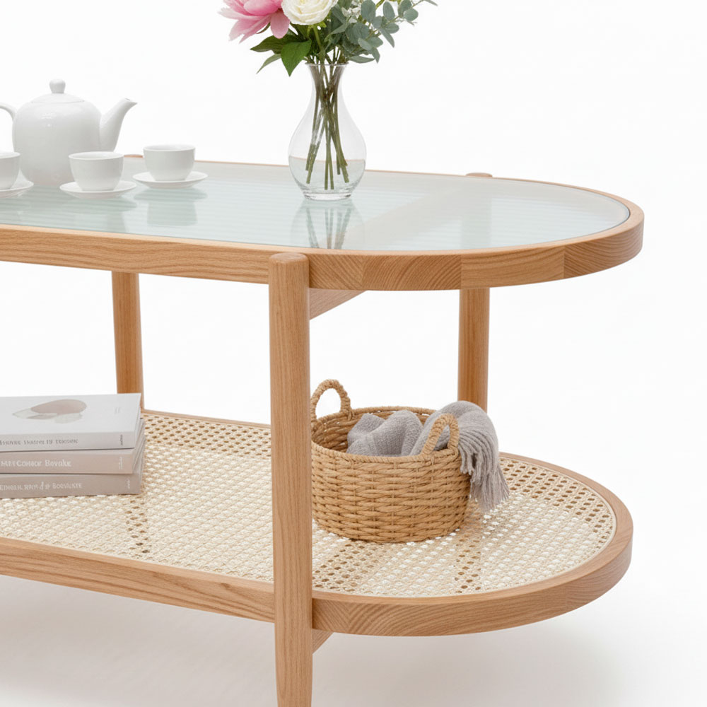 Bàn sofa Oval 2 tầng mặt kính 100x50cm gỗ tần bì TT68348