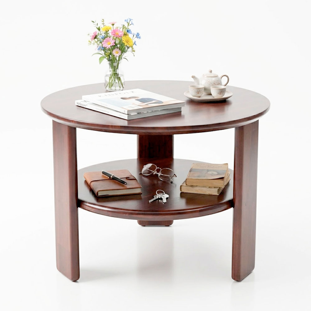 Bàn sofa tròn 2 tầng 60x60cm gỗ tràm TT68372