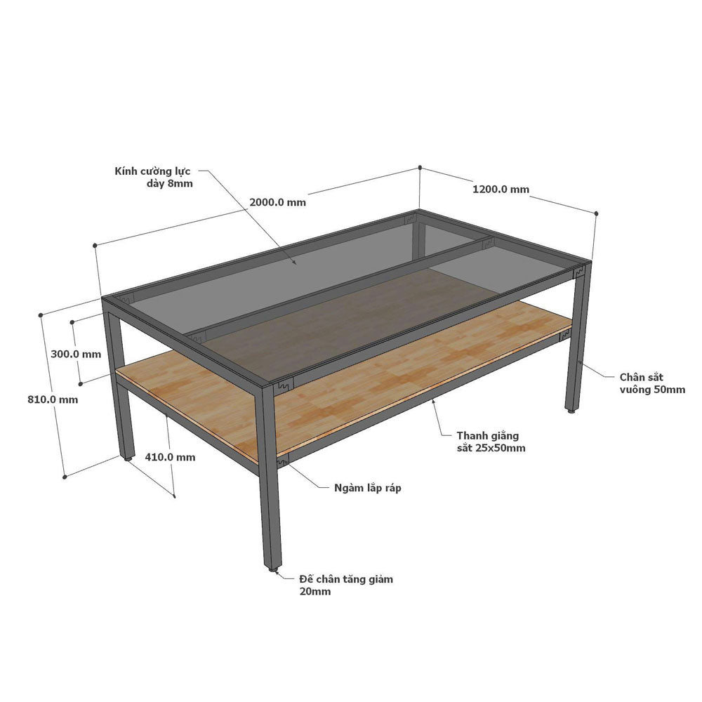 - Chân sắt hộp loại dày 1,2mm, sơn tĩnh điện