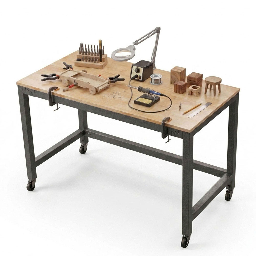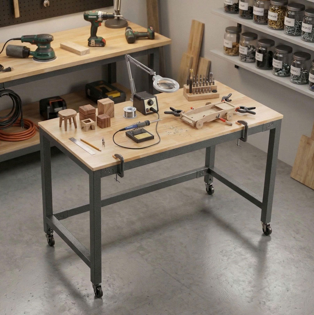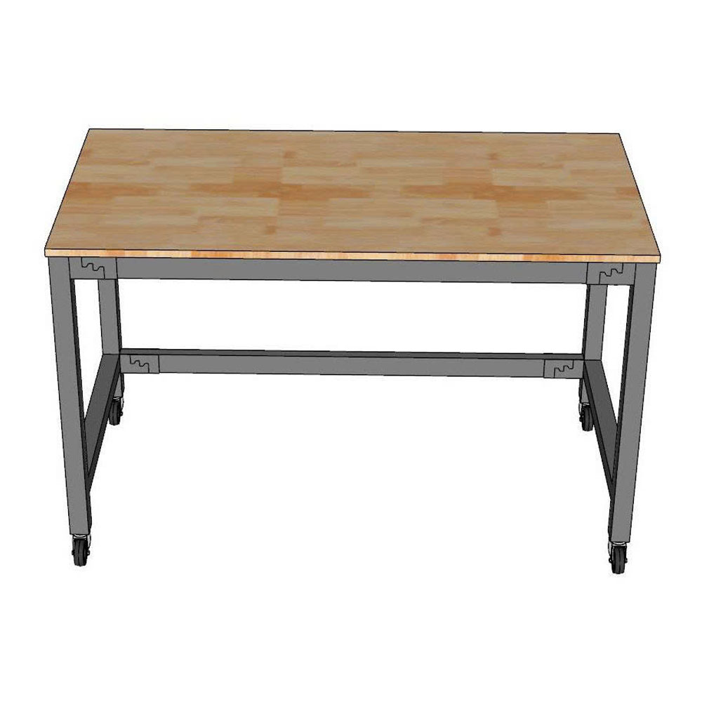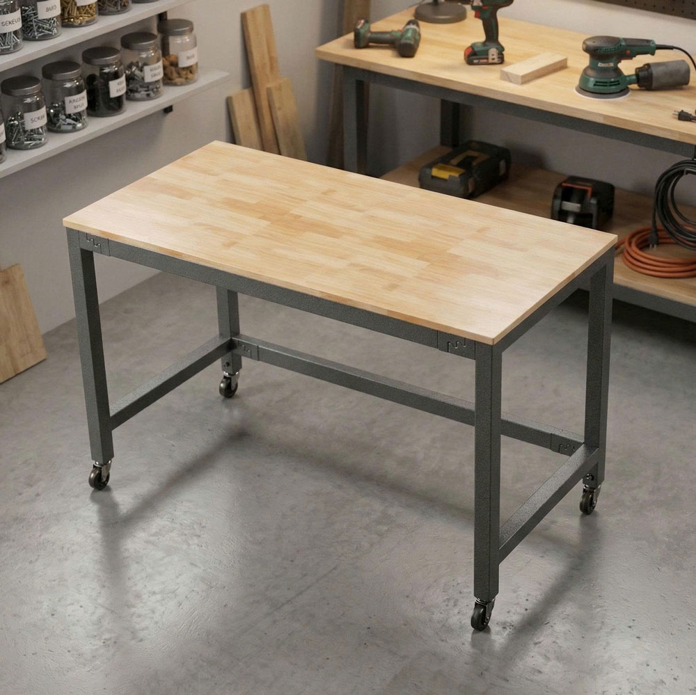 Bàn thao tác di động 120x60cm gỗ cao su chân sắt lắp ráp WSTB005