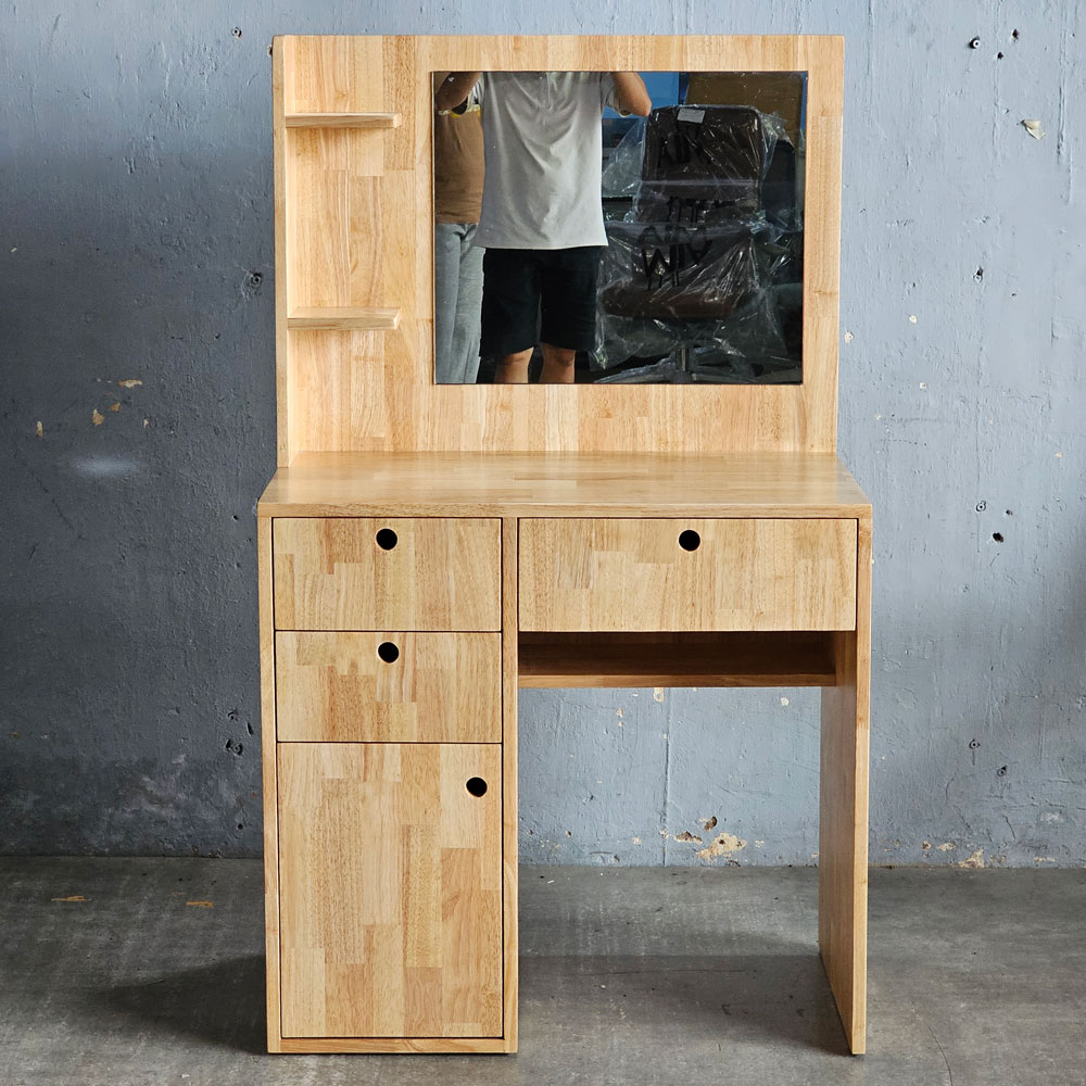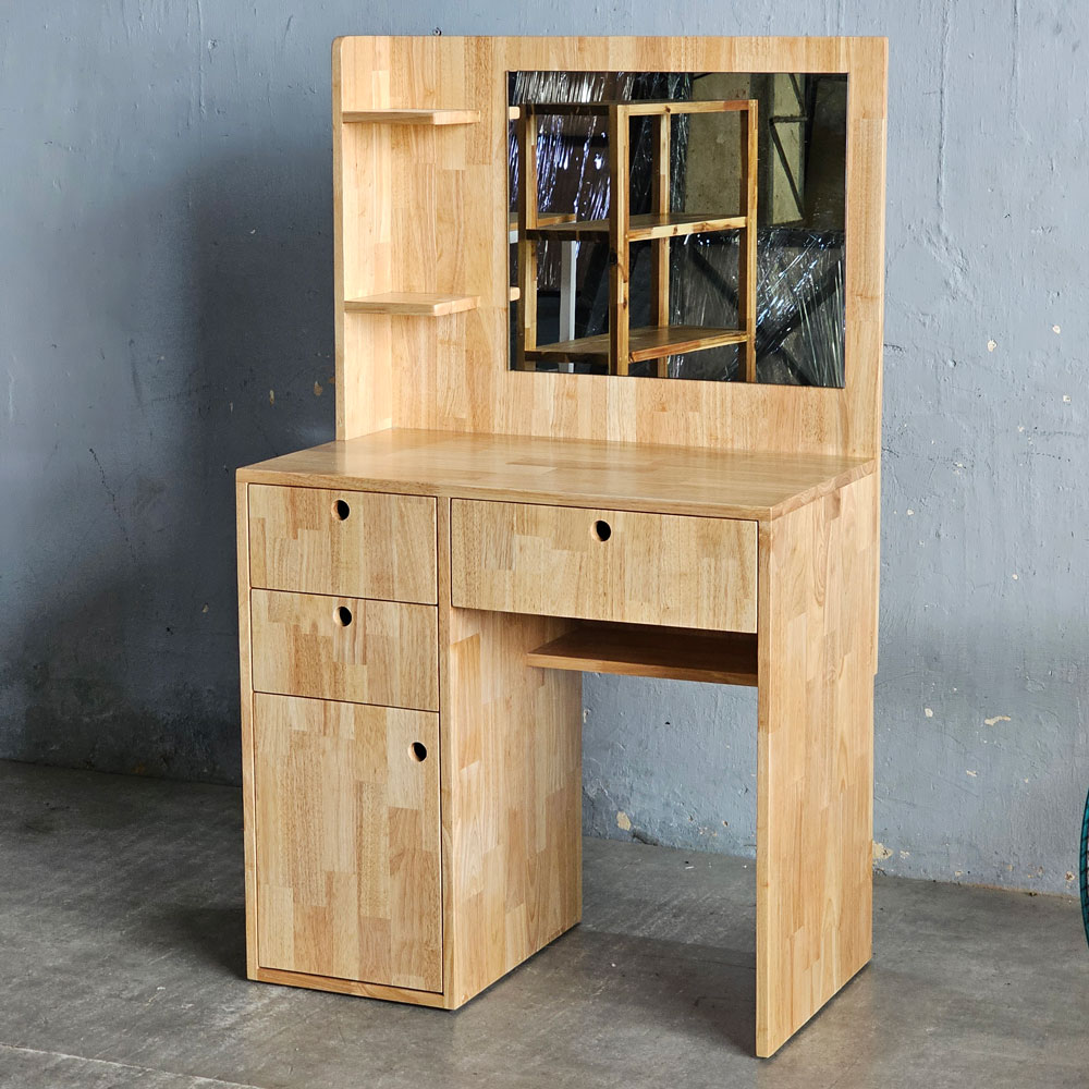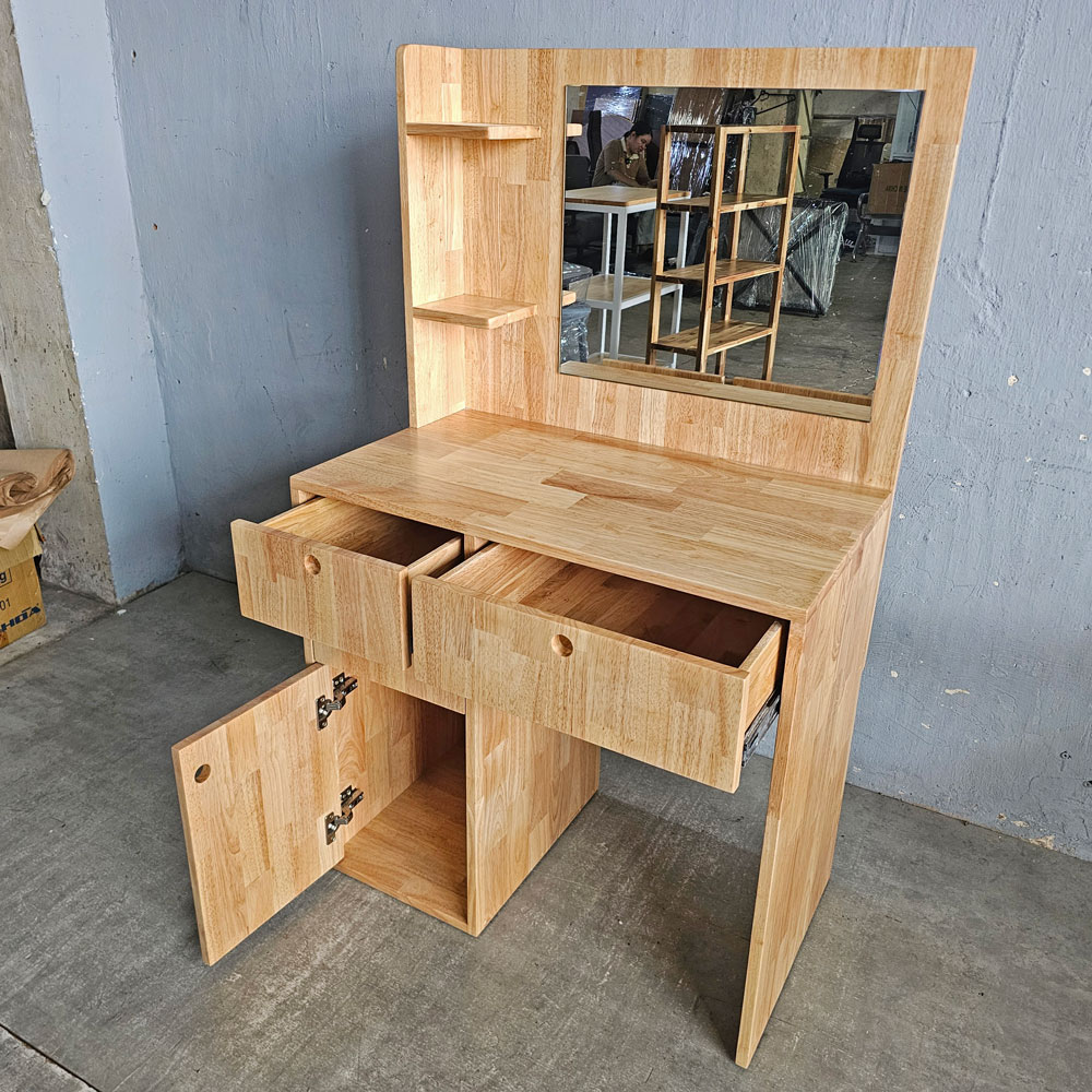 Bàn trang điểm gỗ cao su full trắng đẹp mắt