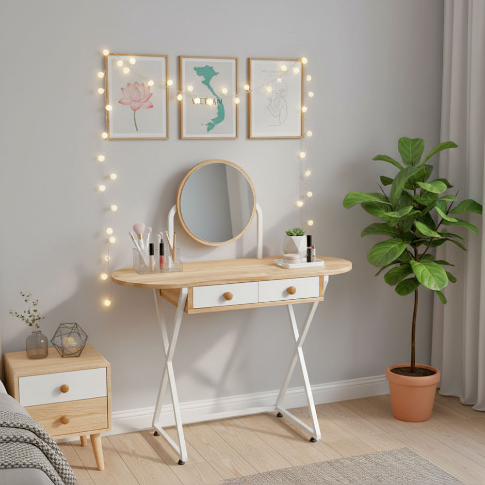 Bàn trang điểm mini có gương gỗ tự nhiên chân sắt BTD68061