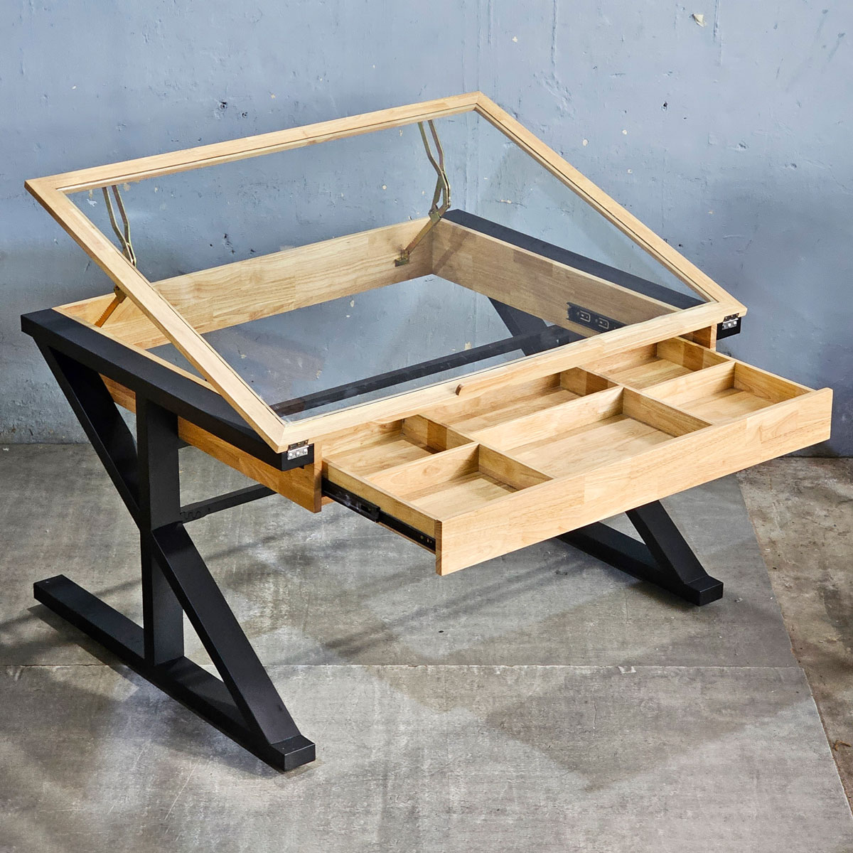 DraftingDesk là dòng bàn làm việc chuyên nghiệp được thiết kế dành cho các kiến trúc sư, kỹ sư và sinh viên ngành kỹ thuật. Nó được sử dụng để vẽ các bản vẽ kỹ thuật, bao gồm bản vẽ kiến trúc, bản vẽ kết cấu và bản vẽ chi tiết. Mặt bàn có thể điều chỉnh độ nghiêng từ 0 đến 60 độ, giúp người dùng thao tác dễ dàng và chính xác.