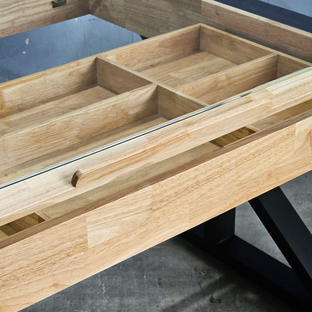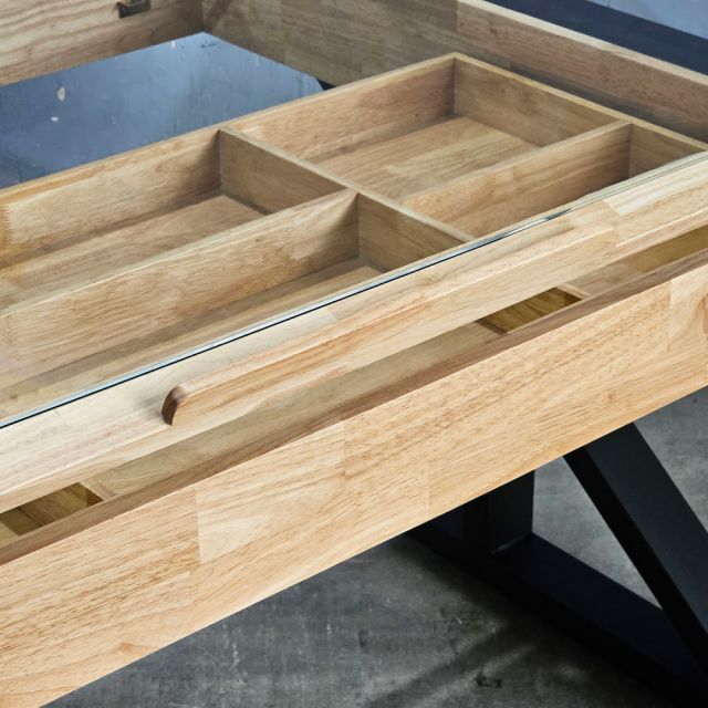 - Chất liêu : Gỗ cao su tiêu chuẩn AA dày 17mm. Khung chân sắt hộp 40x80mm dày 1.2mm chắc chắn