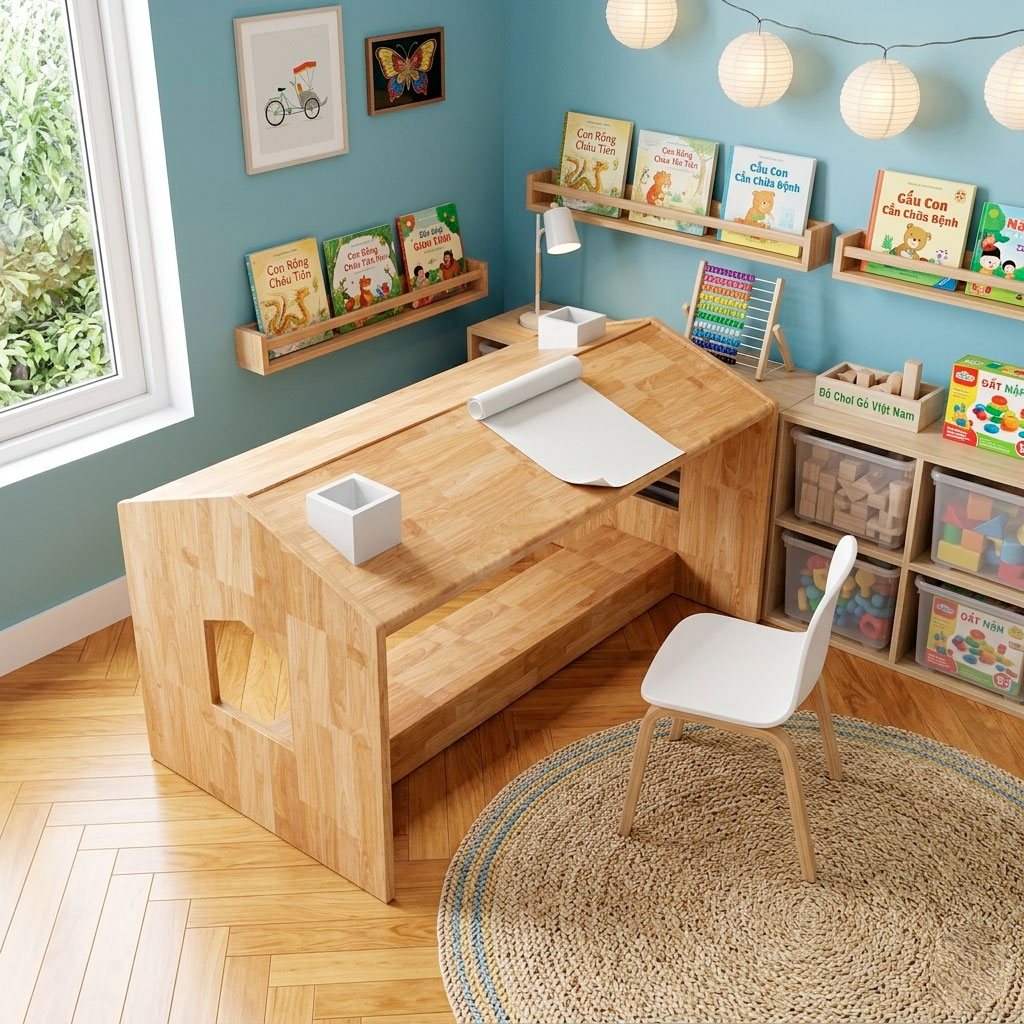 Bàn vẽ tranh cho trẻ em gỗ cao su TREM003